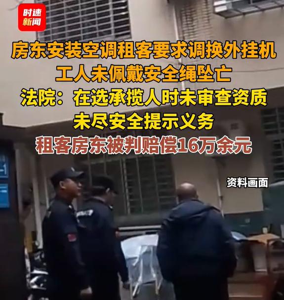 内蒙古,房东准备给自家房子安装空调,安装妥善之后租客提出要求,希望调换外挂机,于是就拨打了售后电话,提出了移机诉求。安排师傅上门时,工人师傅没有佩戴安全绳,一个不小心就从6楼掉下去了。这下房东、租客都悲催了,被工人的家属给上诉了,要求他们赔偿经济损失。