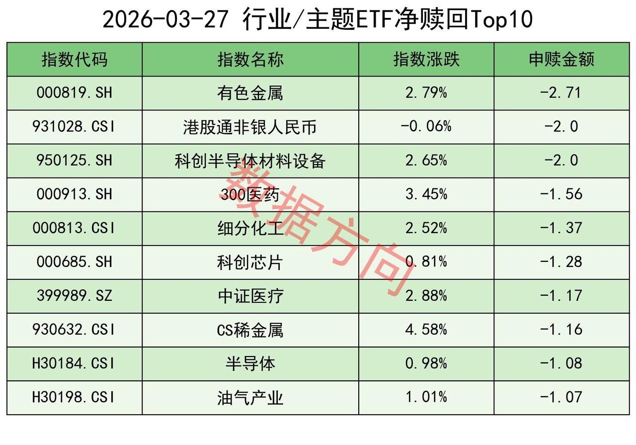 有色金属指数(-2.71亿)、细分化工指数(-1.37亿)、CS稀金属指数(-1.16亿)、油气产业指数(-1.07亿),一起进入赎回榜;