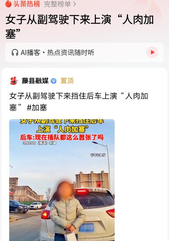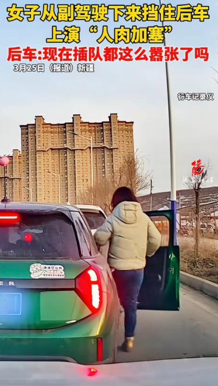 完成这一系列动作后,女子转身回到副驾驶座,车辆随即启动,强行插队成功,随后一路扬长而去,只留下被堵在原地、满是错愕的后车司机。