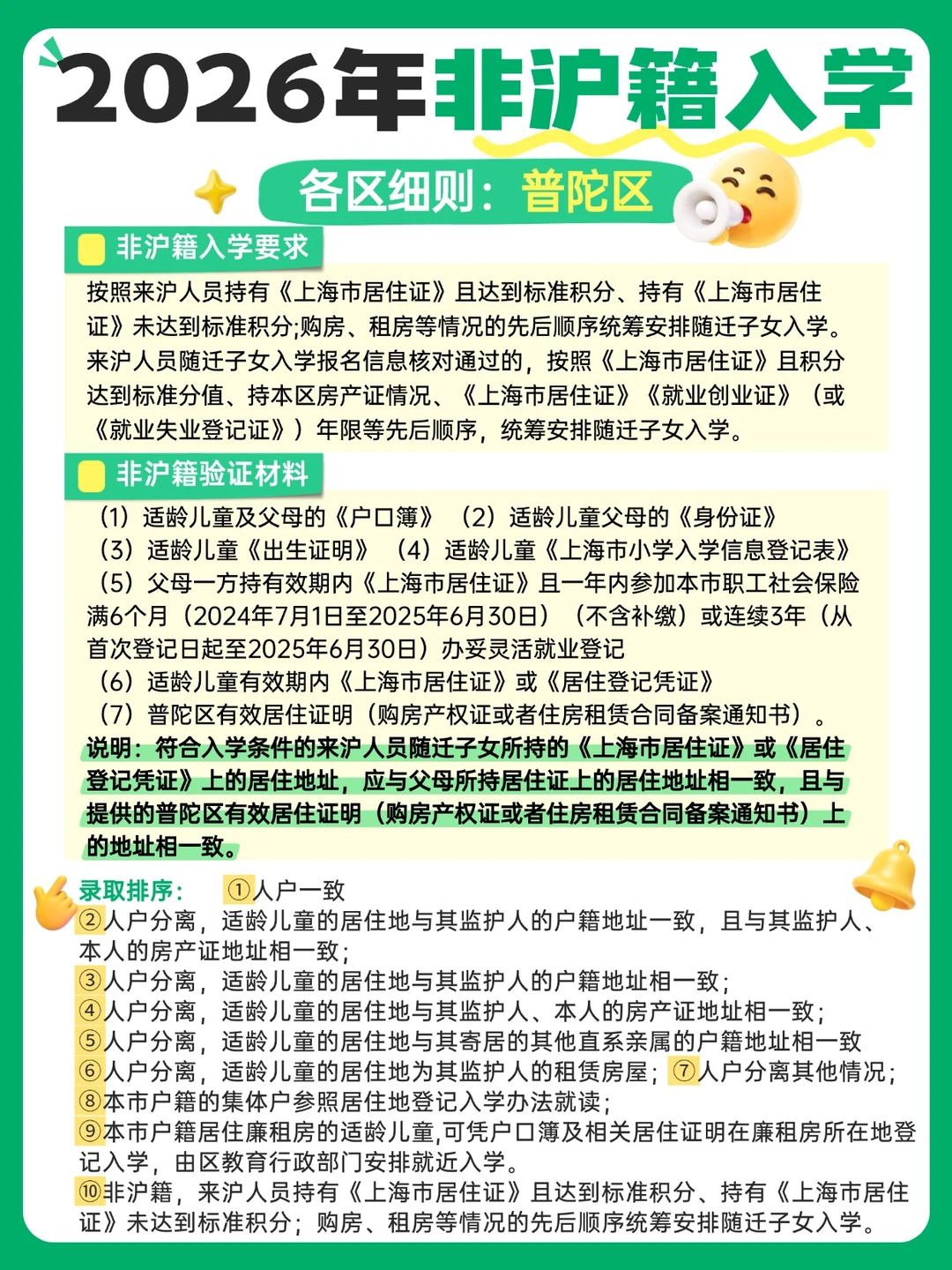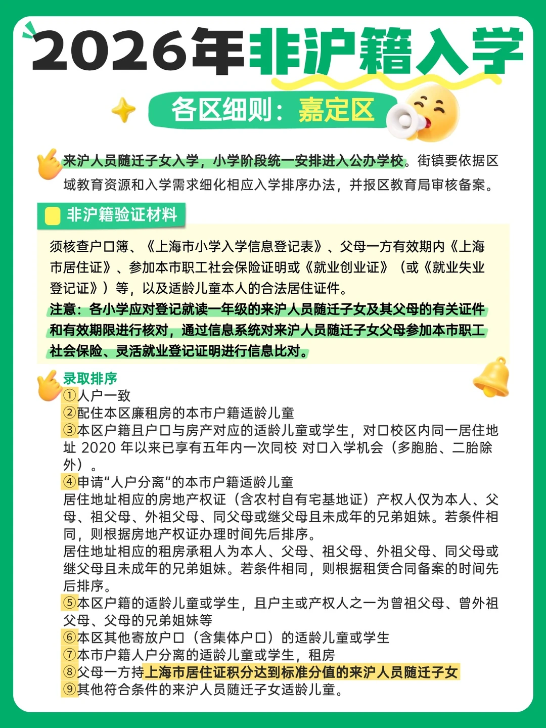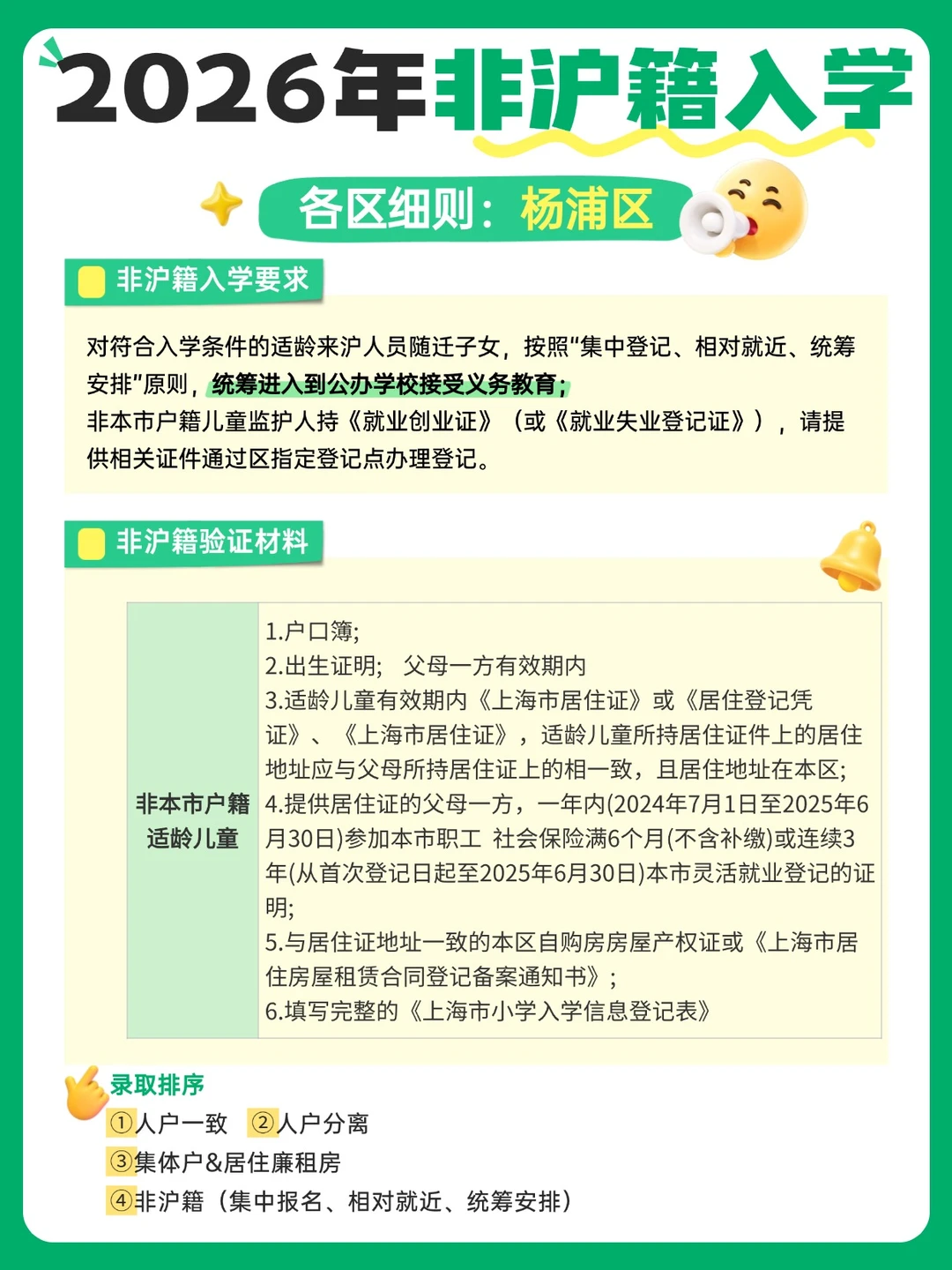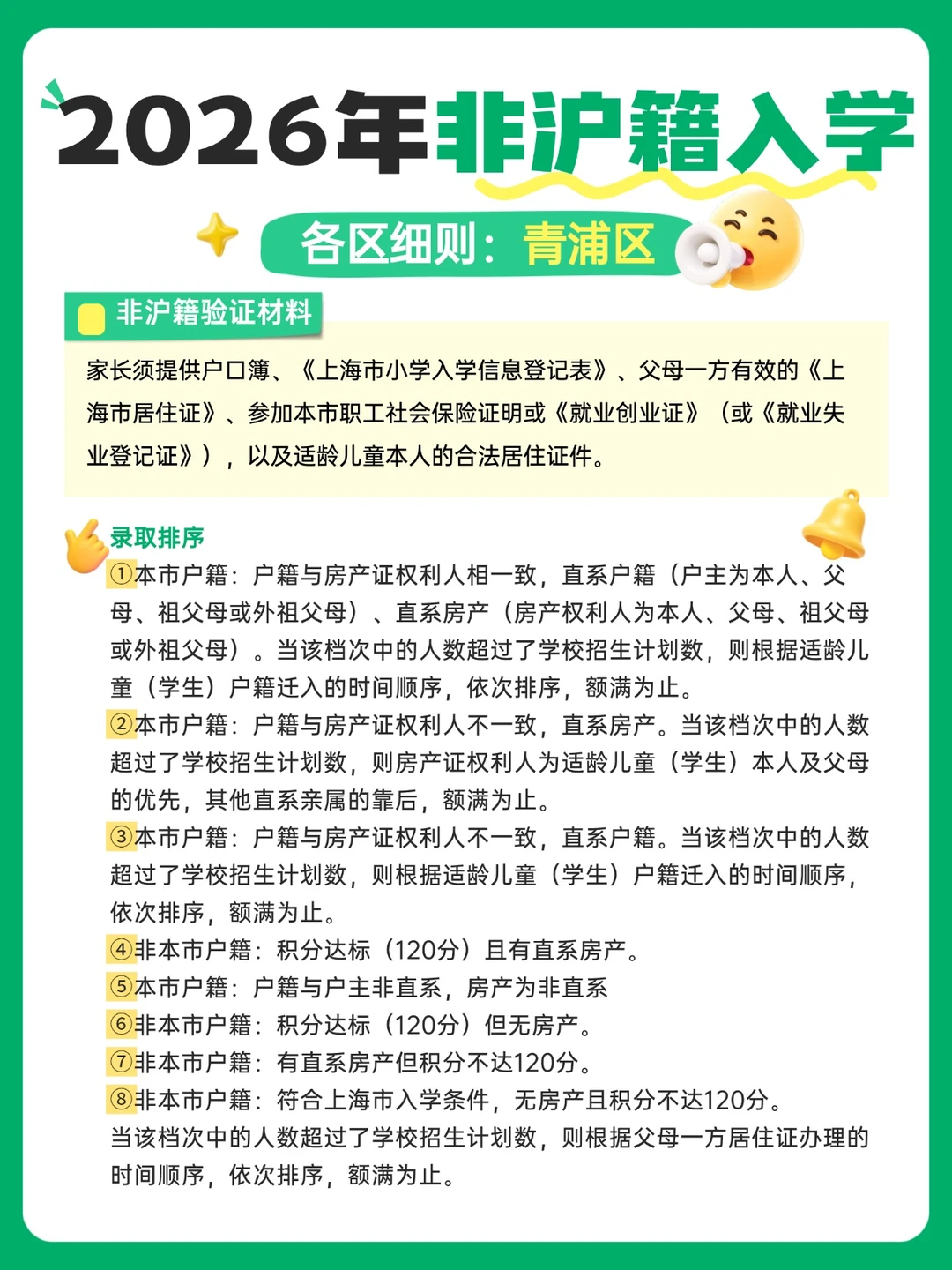 上海家长们,尤其是非沪籍的宝爸宝妈们,2026年入学新规真的不能再拖了!👋