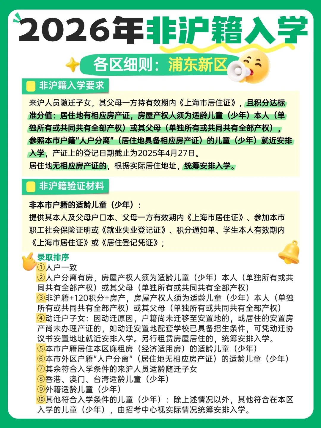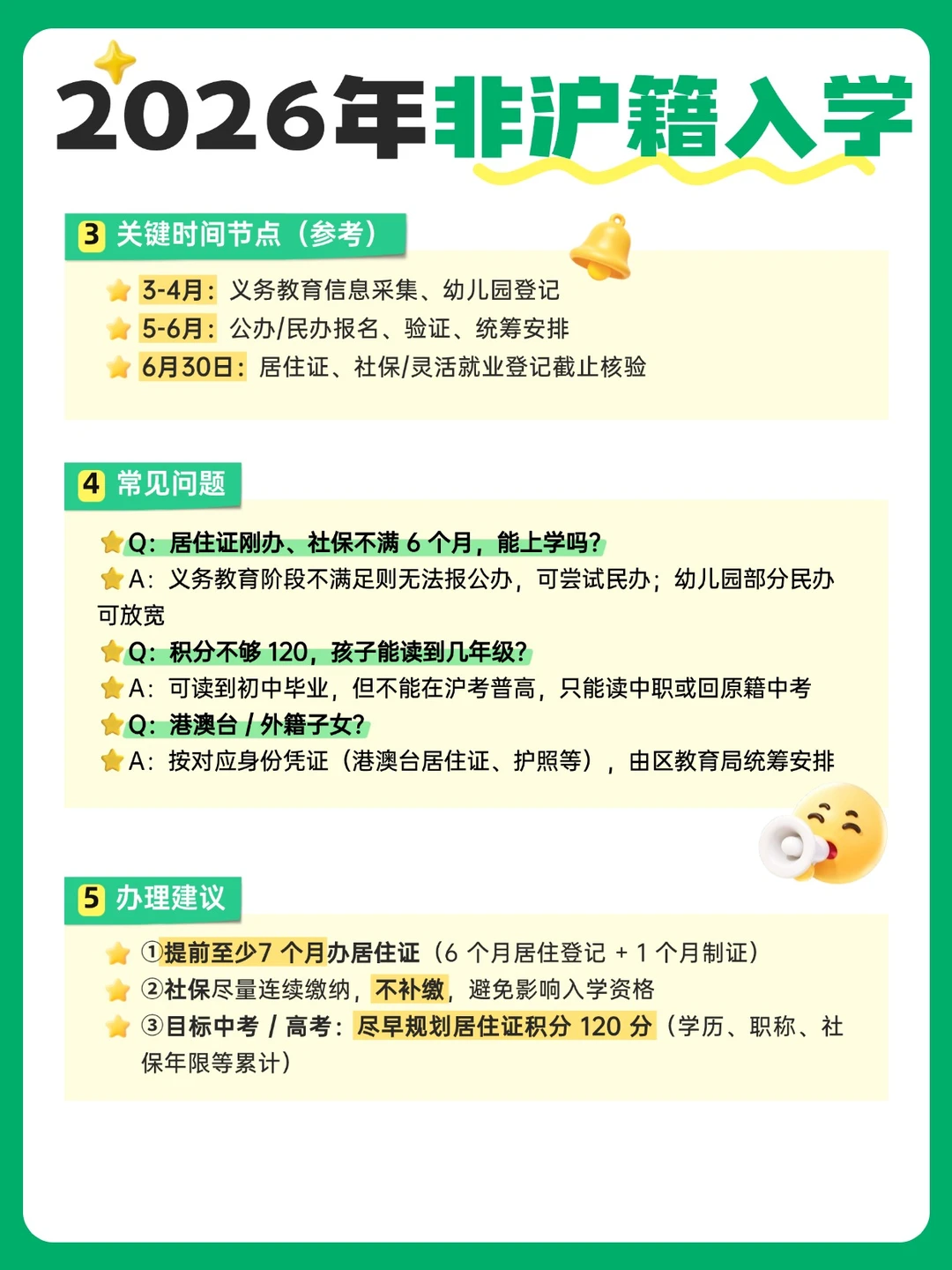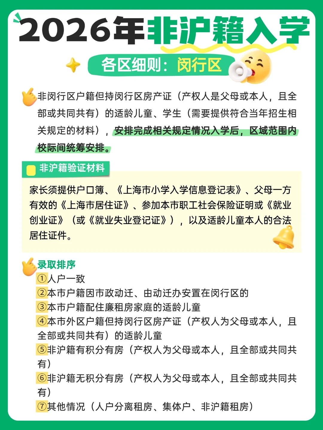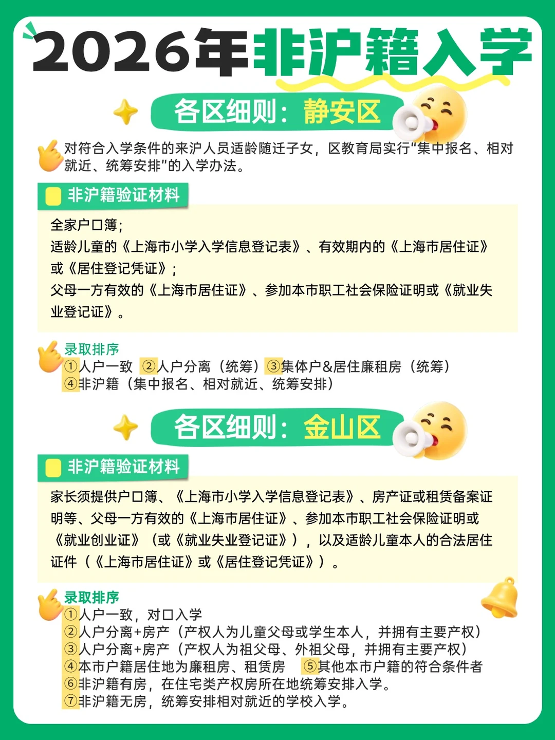 上海家长们,尤其是非沪籍的宝爸宝妈们,2026年入学新规真的不能再拖了!👋