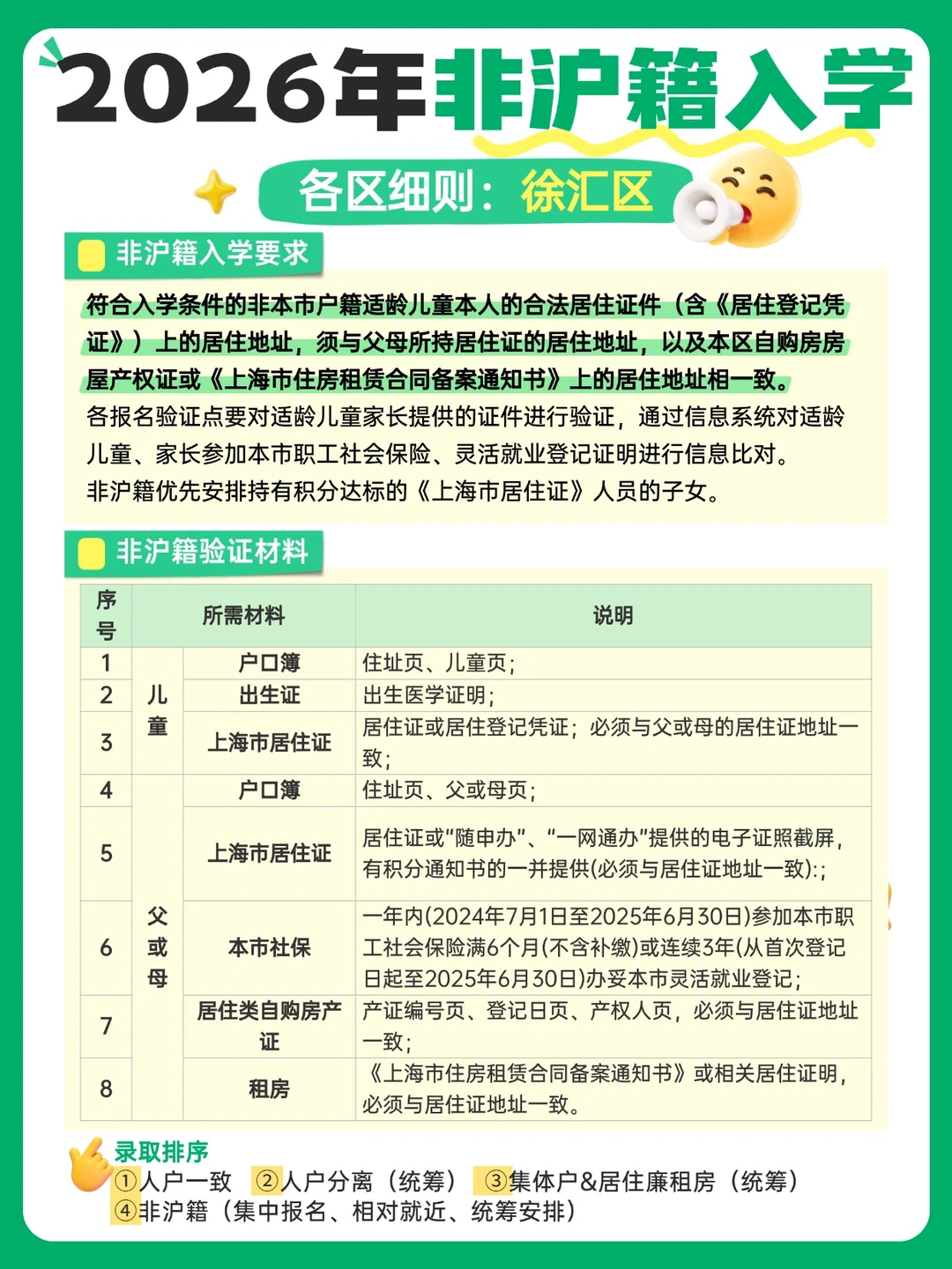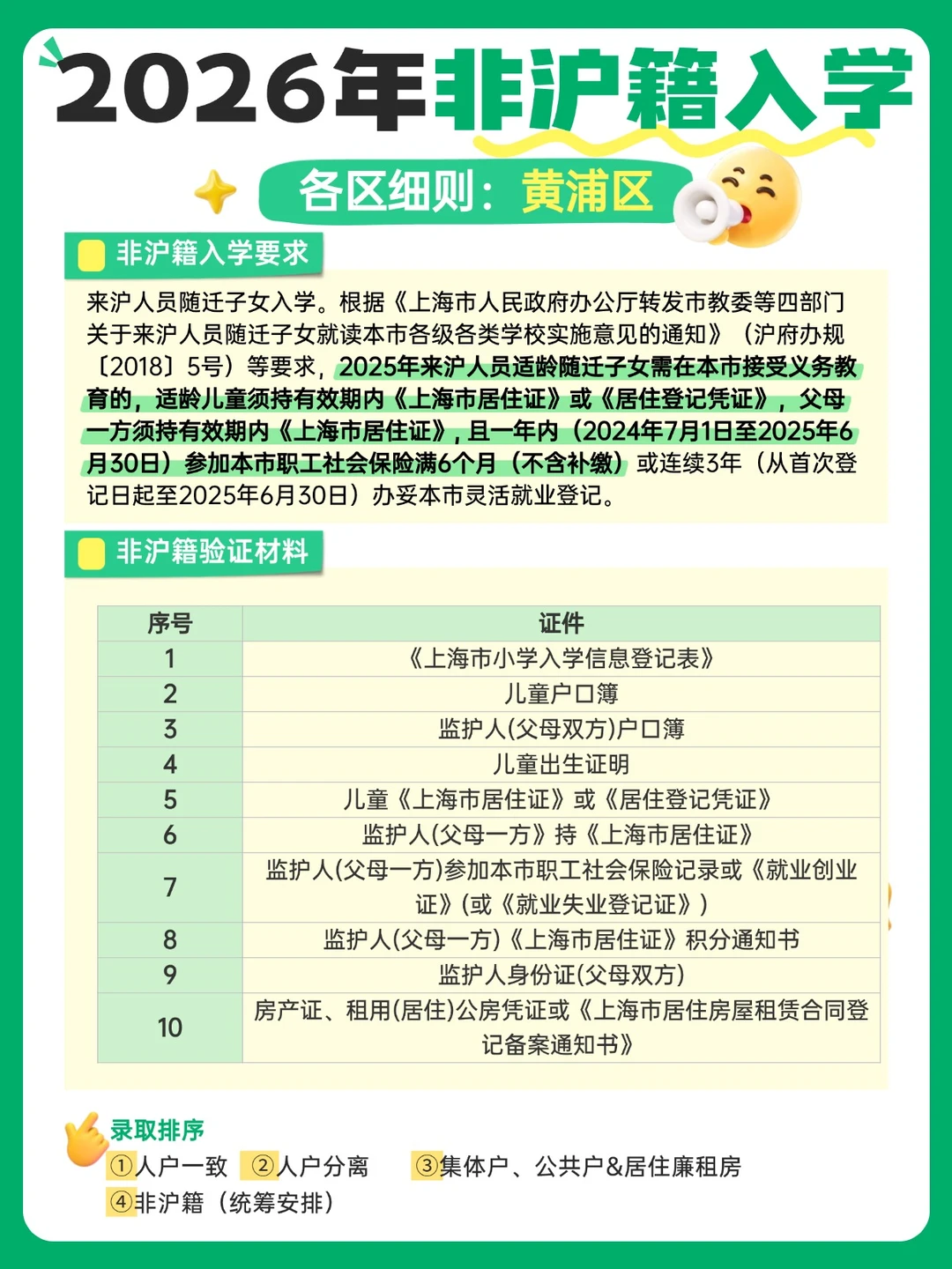 2026非沪籍上海入学!16区录取顺位快码住