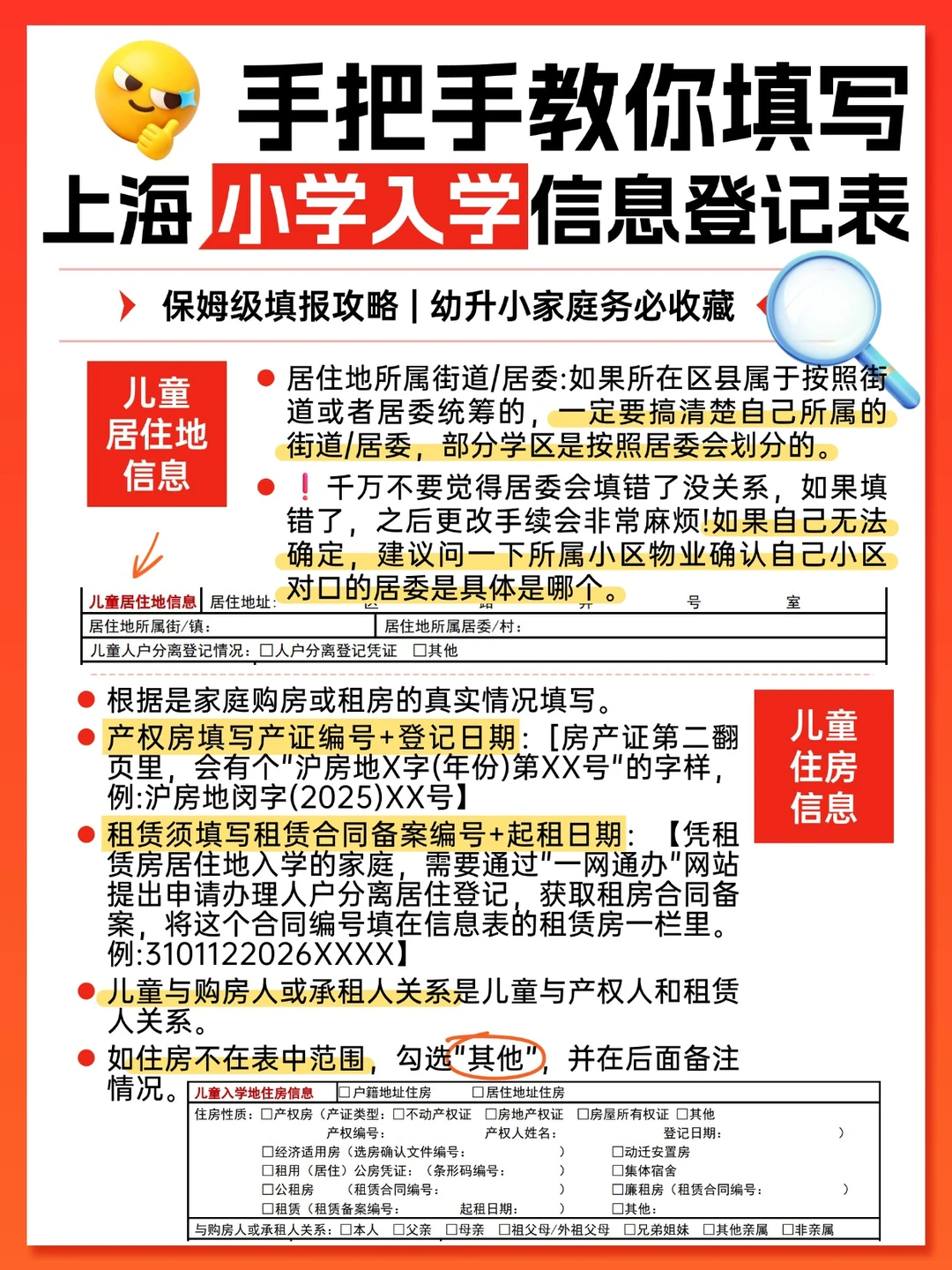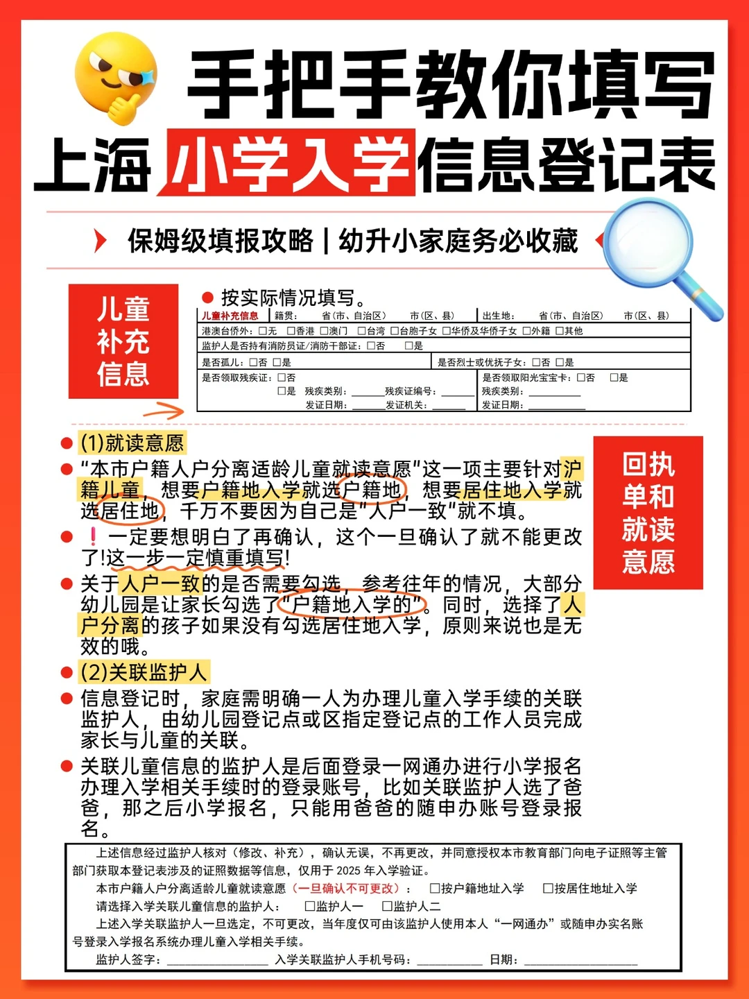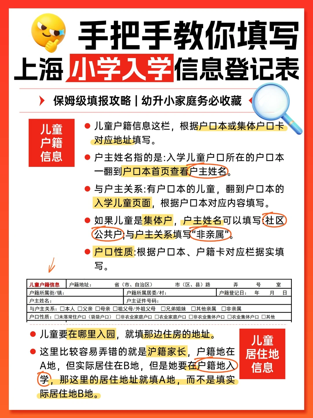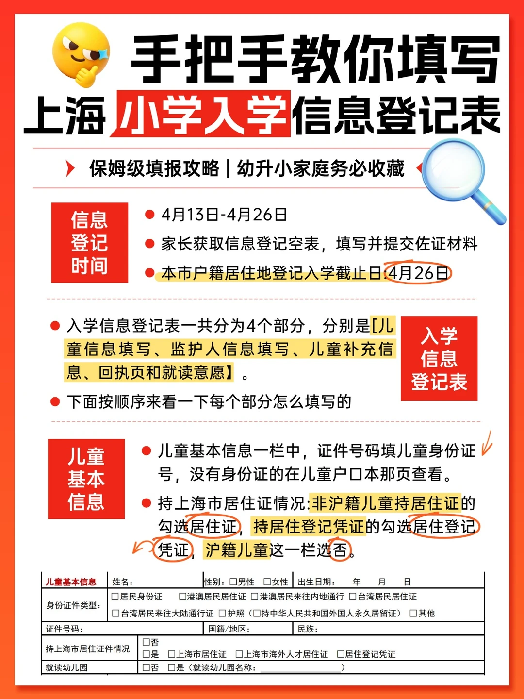 👋家长们注意啦!上海幼升小第一关——《小学入学信息登记表》 来了!