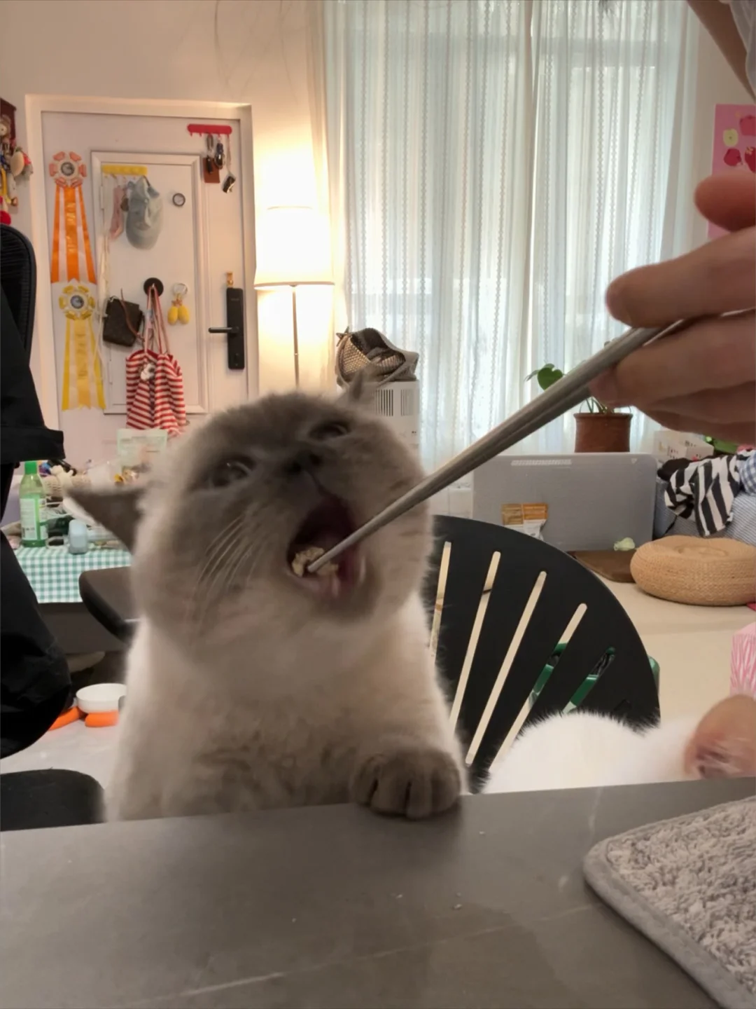 谁家小猫这么张嘴吃饭🥹