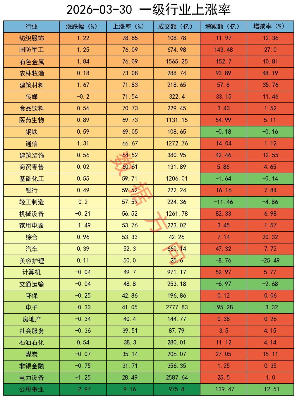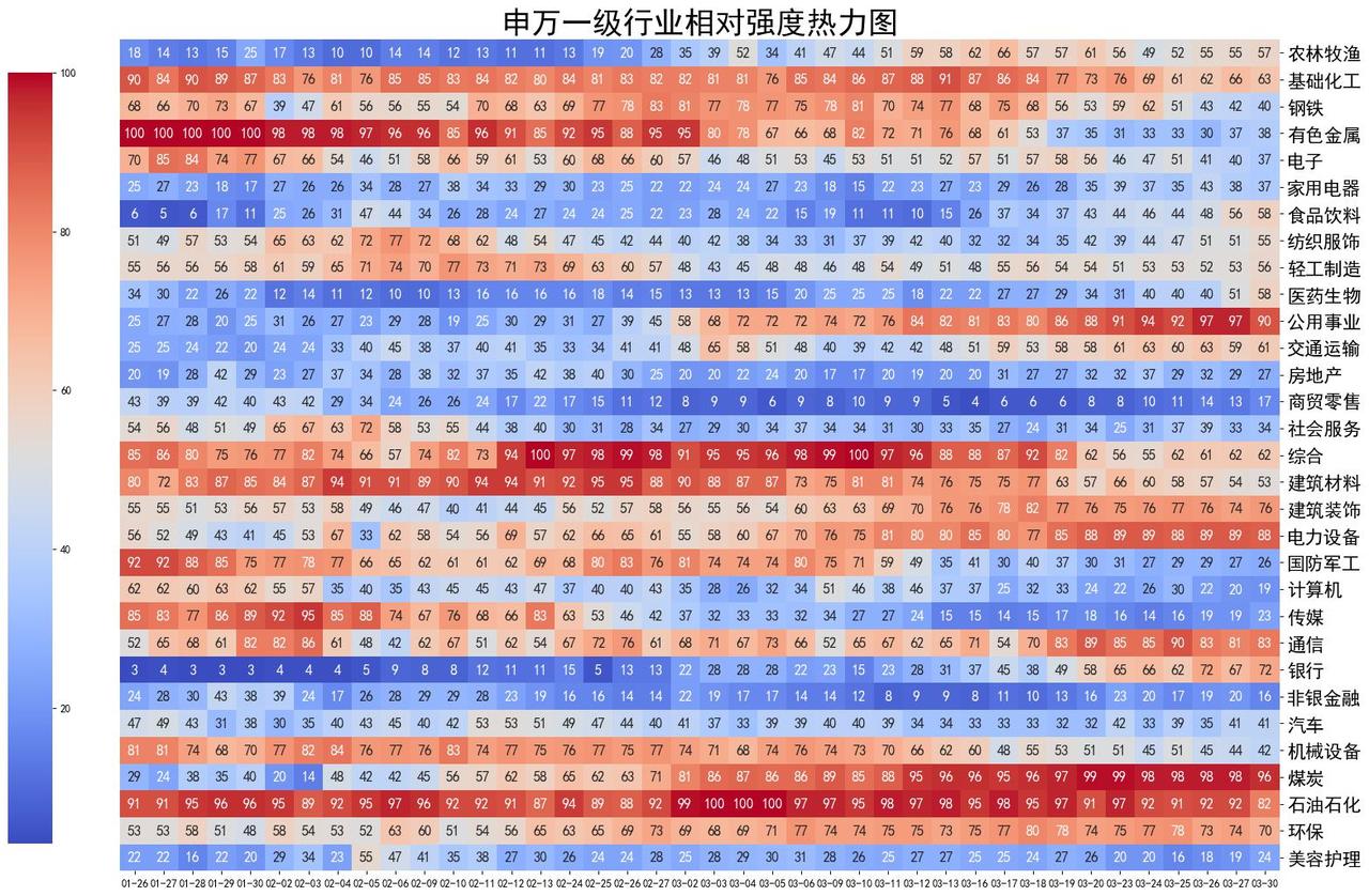 有色金属、钢铁、基础化工,一起位于榜单前列