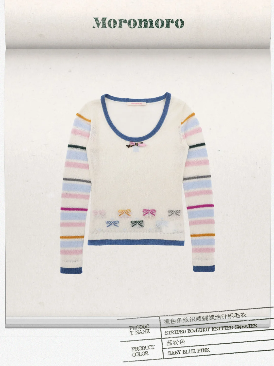 感谢sieun 朴莳恩上身* 撞色条纹蝴蝶结针织上衣