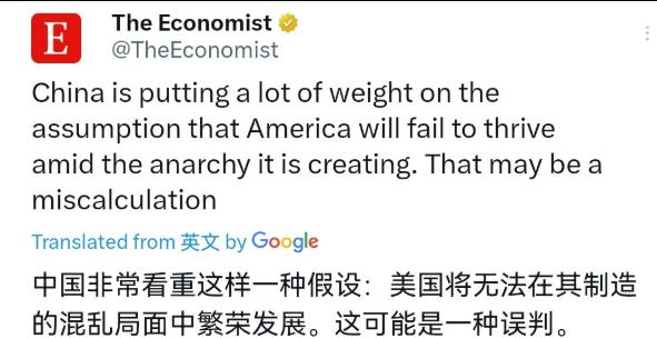所以,《经济学人》说中国“误判”,它到底误判了什么?是误判了美国不会犯错,还是误判了美国还能像过去那样,靠几艘航母、几架飞机就能为所欲为?