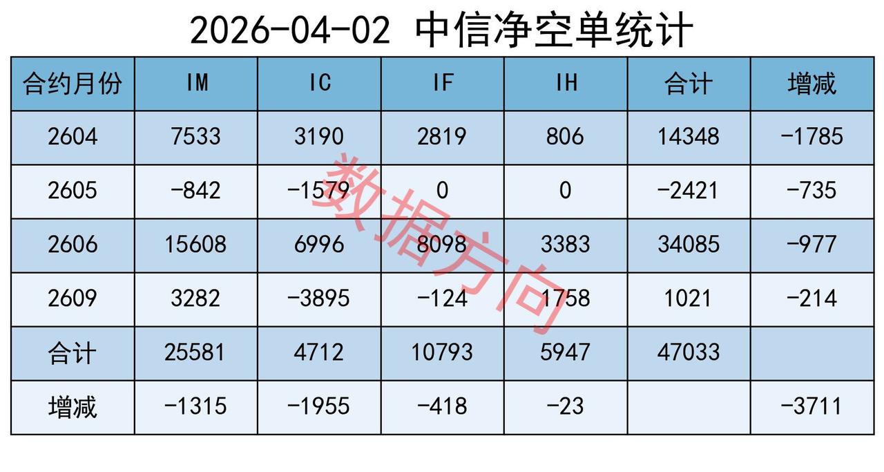 四大品种全部减空,分别对IH、IF减空154手、495手,分别对IC、IM减空1335手、478手;