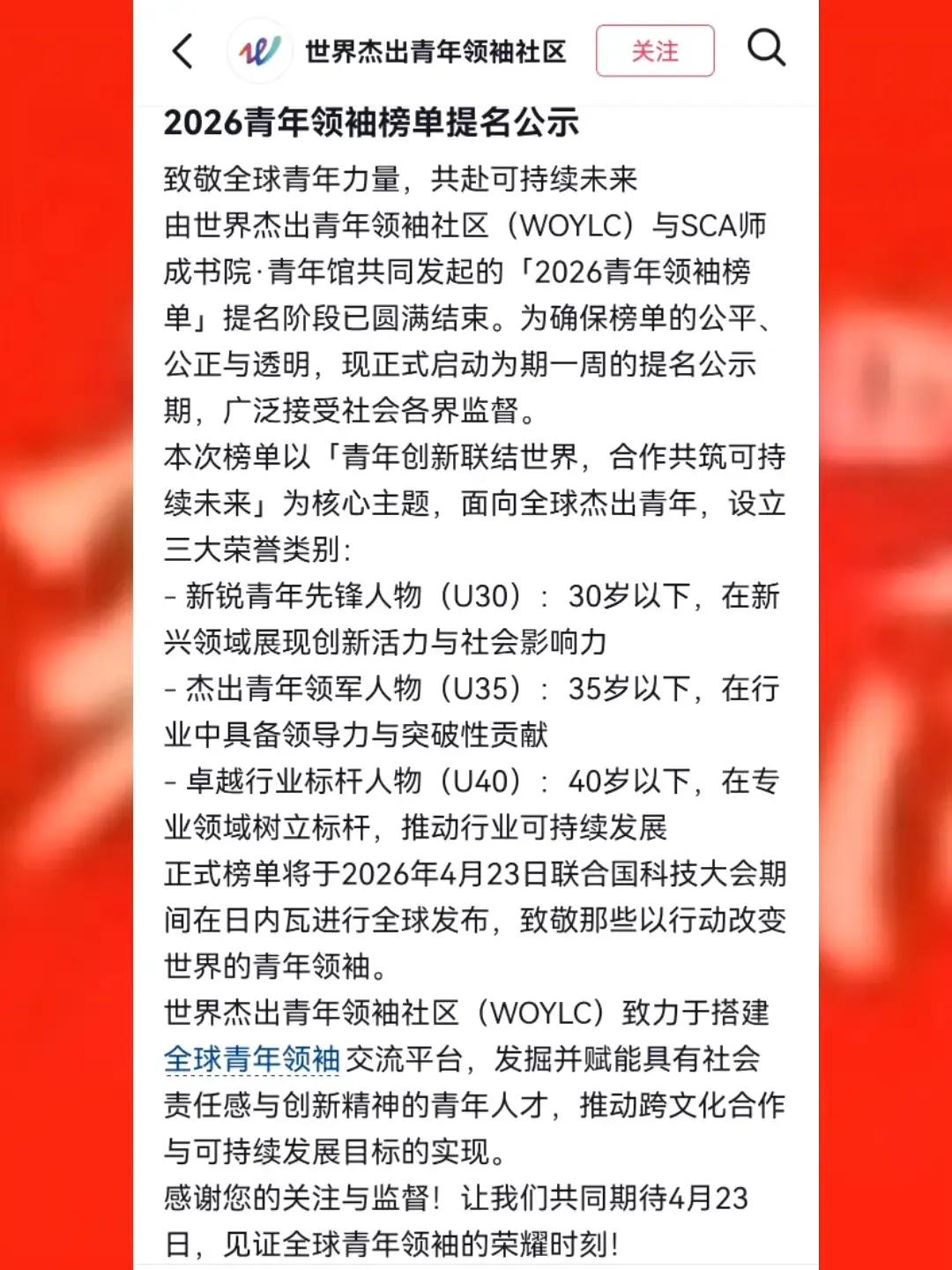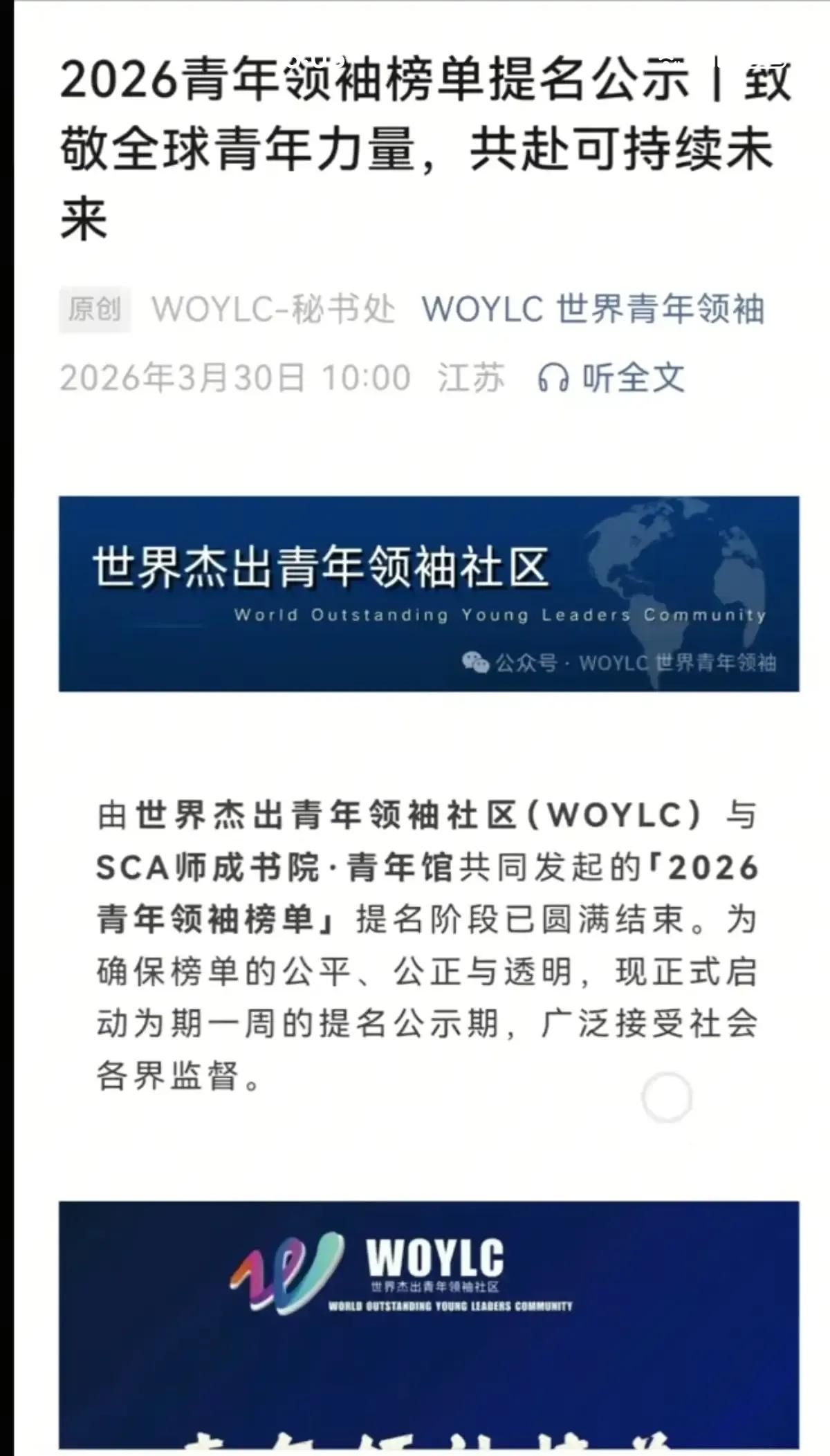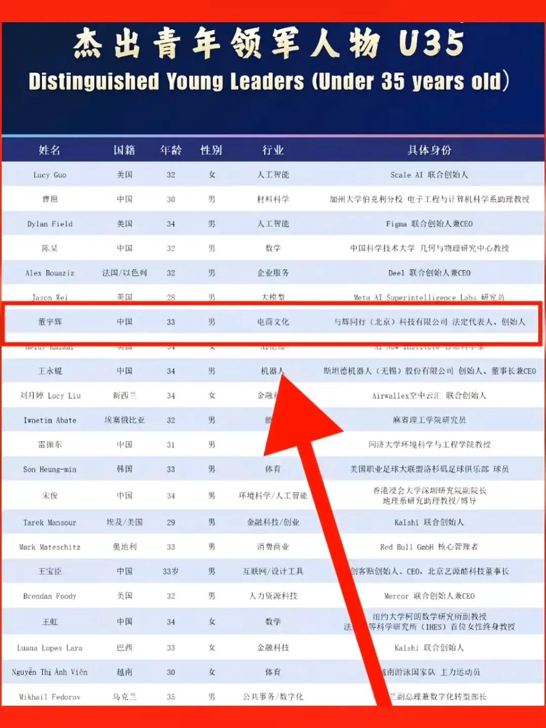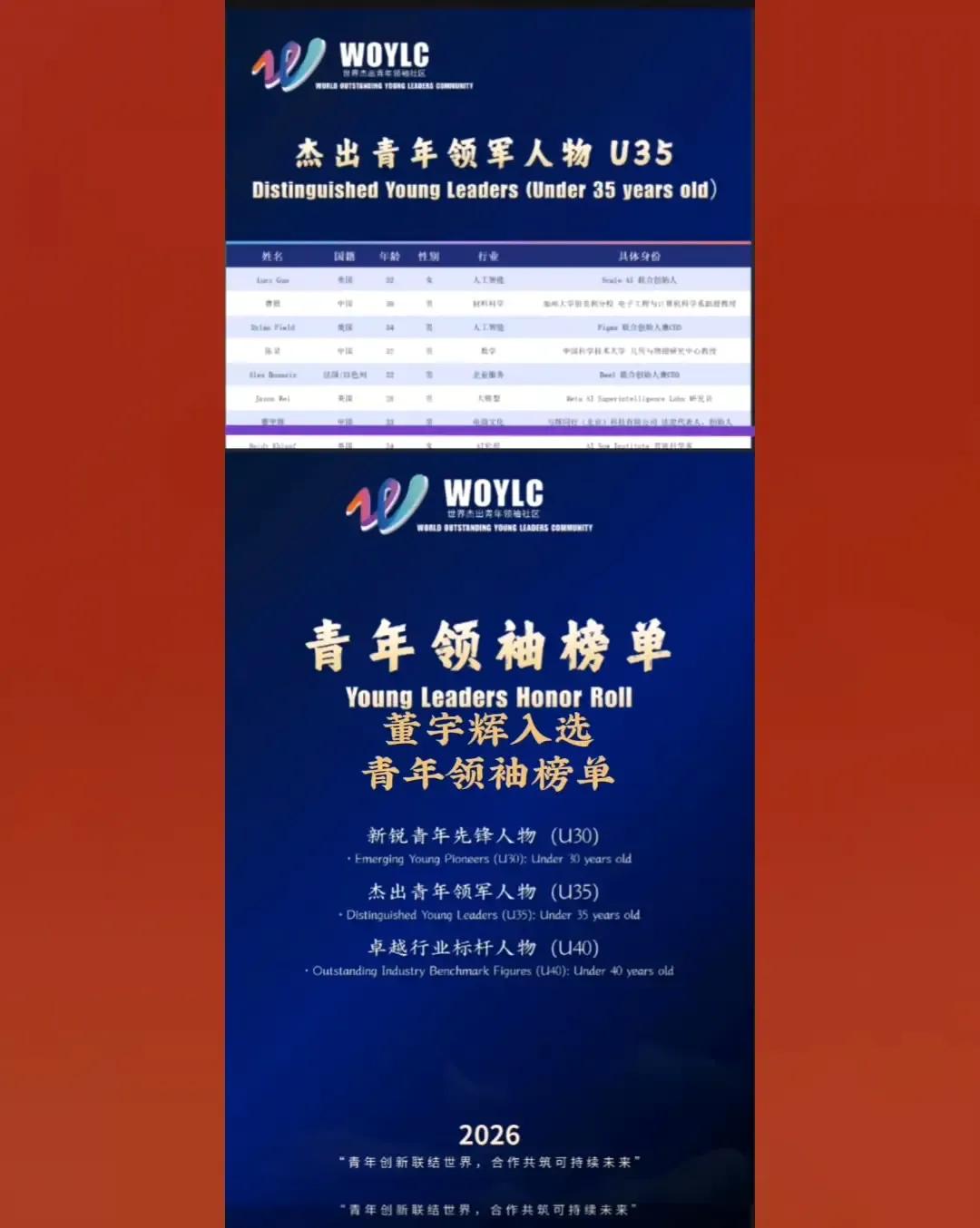 恭喜董宇辉老师,荣登世界杰出青年领袖榜单2026WOYLC