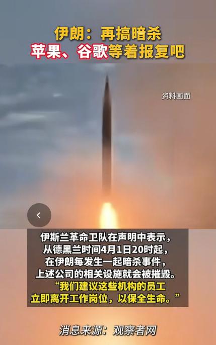 只要美以再敢实施针对伊朗领导人的暗杀行动,美国的顶级科技巨头,就要跟着一起付出代价。