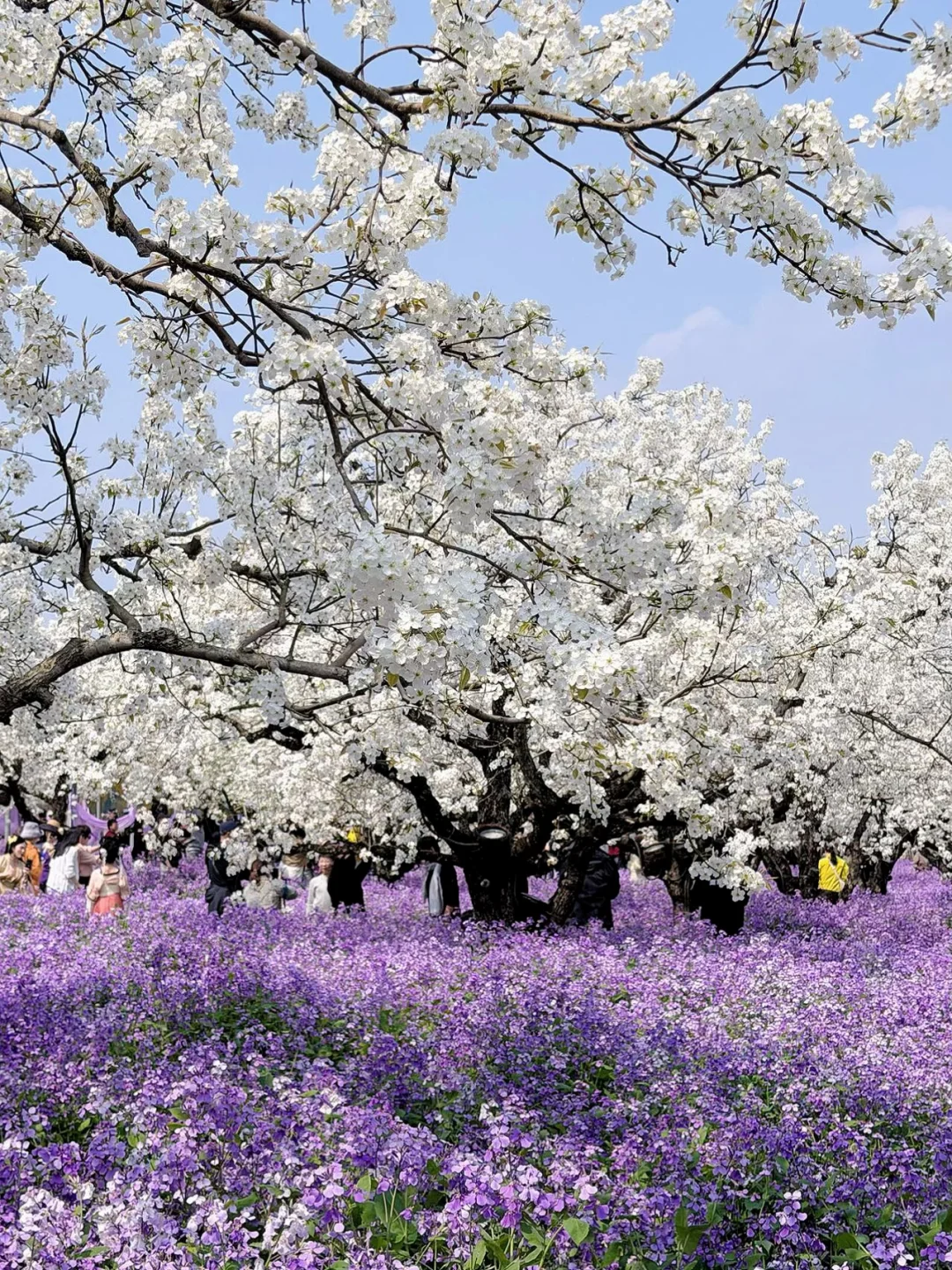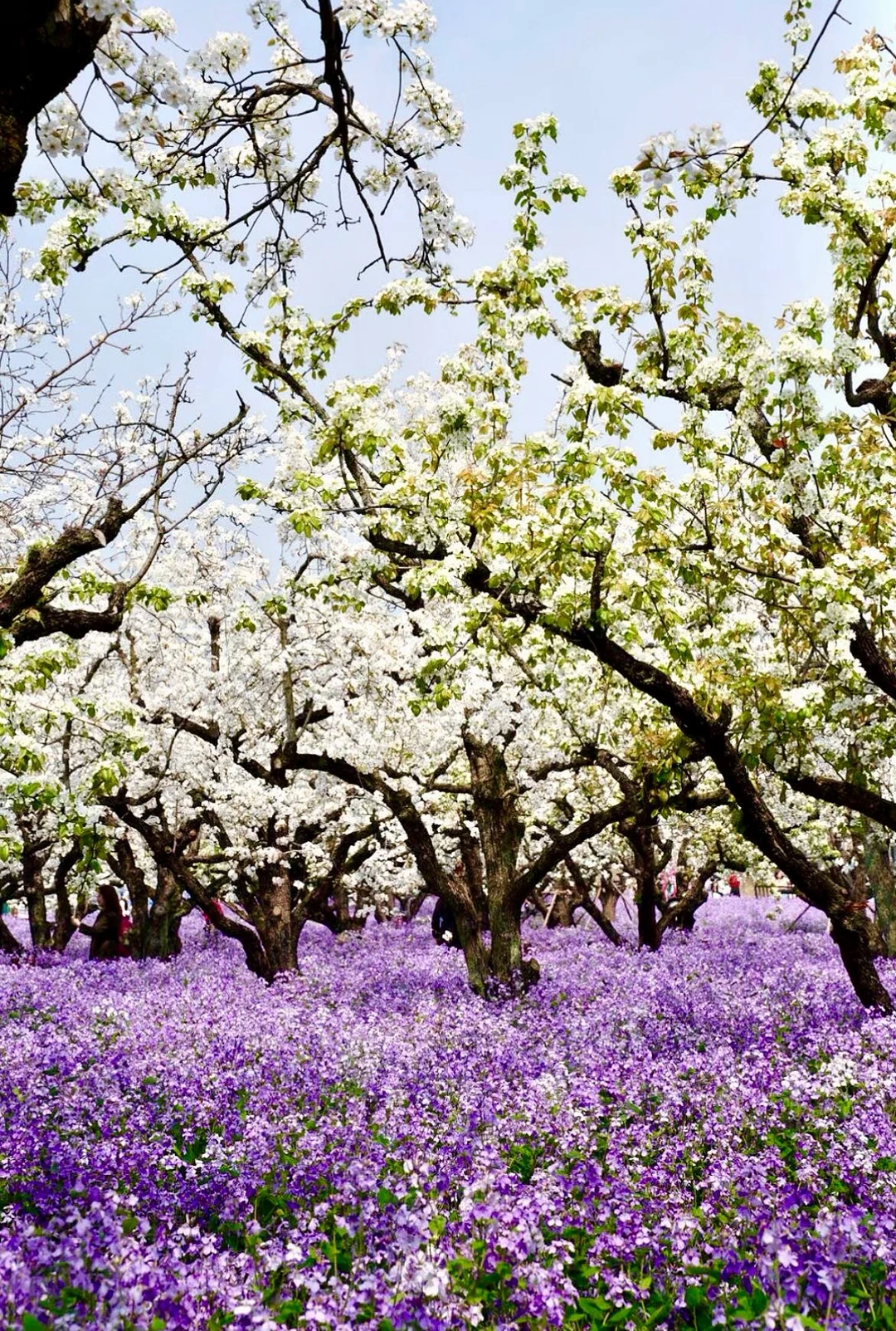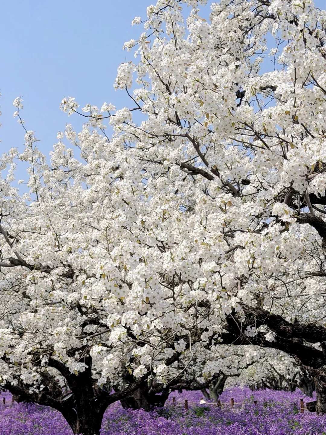 ☑️双花海奇观:500亩白梨花+紫二月兰,清明花期刚刚好!