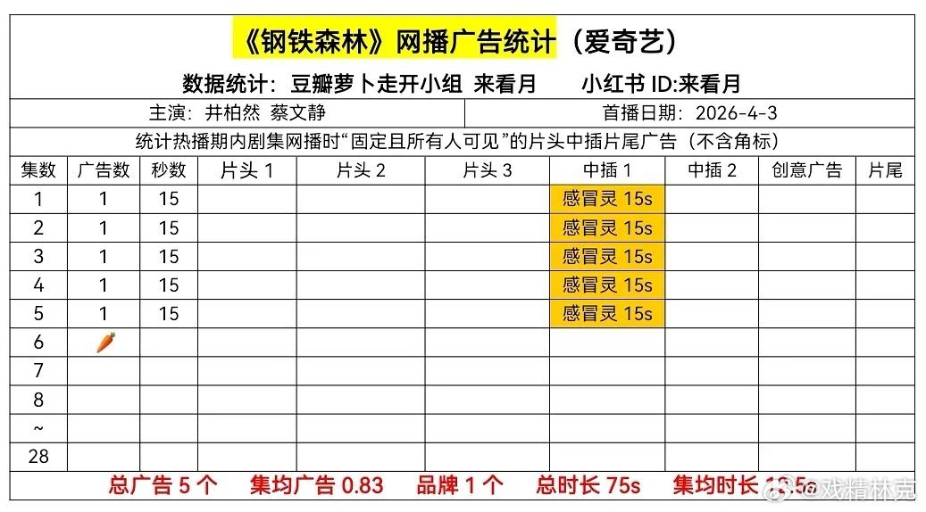 钢铁森林开播首日热度目前居然只有4396,和你定档1.7万百指的气质不太匹配啊,血扑开局了。加上第6集已萝卜。我看完了3集,情感线其实还算比较有看点,但是男演员选角比较拉,估计没啥红白之争的效果。刑侦线开头很平庸,没啥吸引力,而且因为有不少比例要刻画情感线,导致推进会比纯刑侦剧更慢一点吧。目前我觉得属于可看可不看的水平