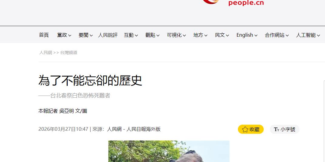 信息来源:《為了不能忘卻的歷史》,人民网,2026年3月27日。