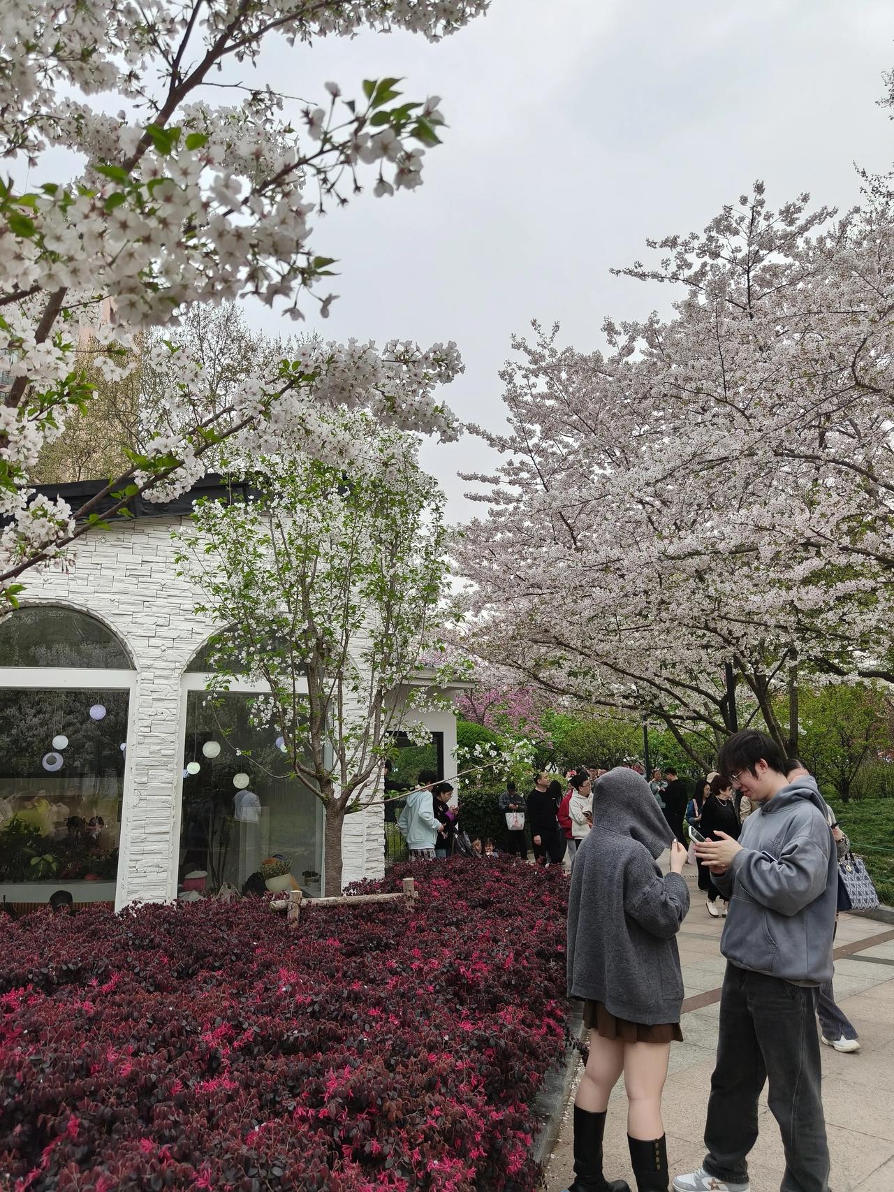娇羞含笑:拟人化地形容樱花在微风中轻轻摇曳,仿佛含笑点头,展现温柔娴静的气质。