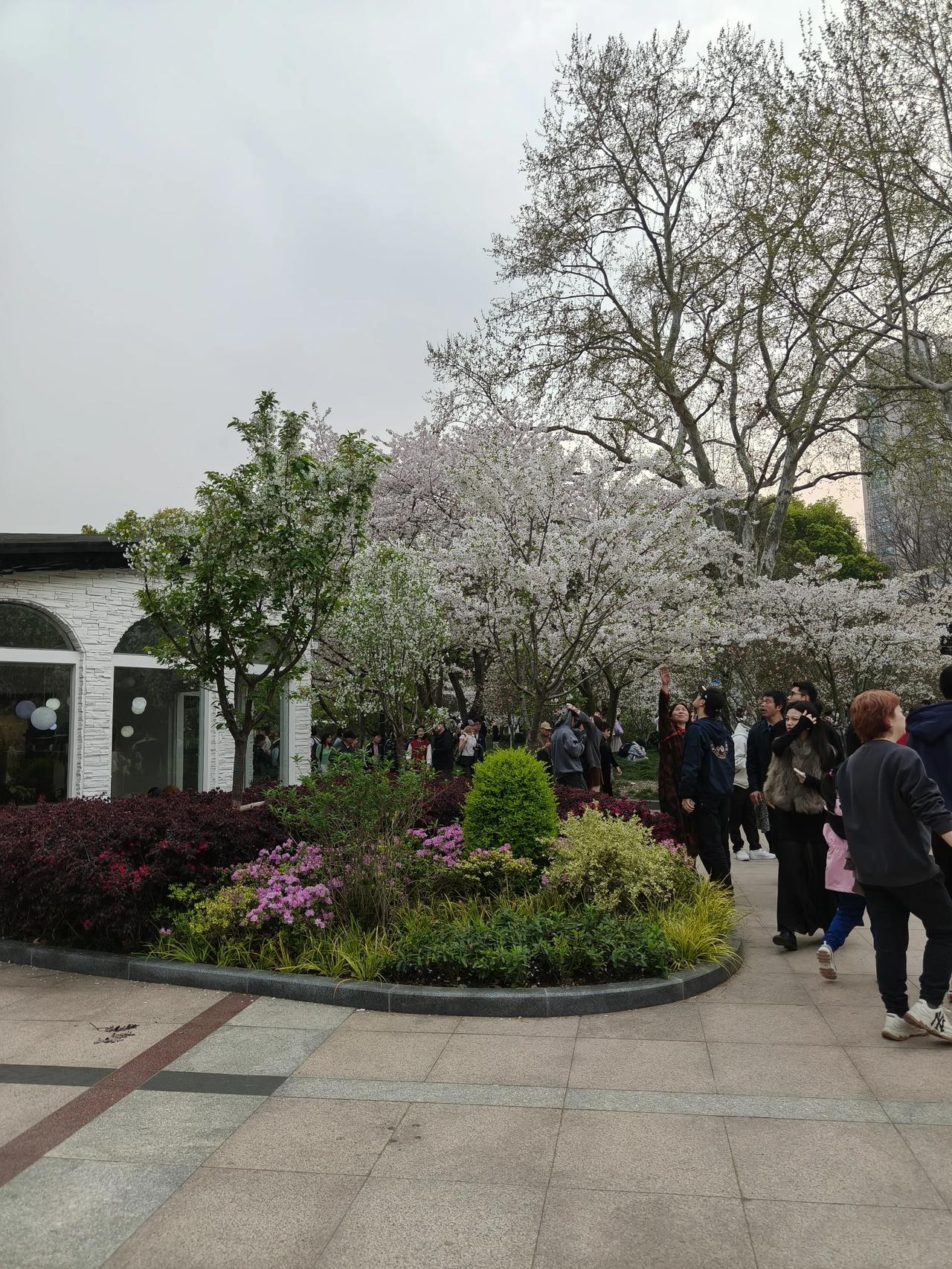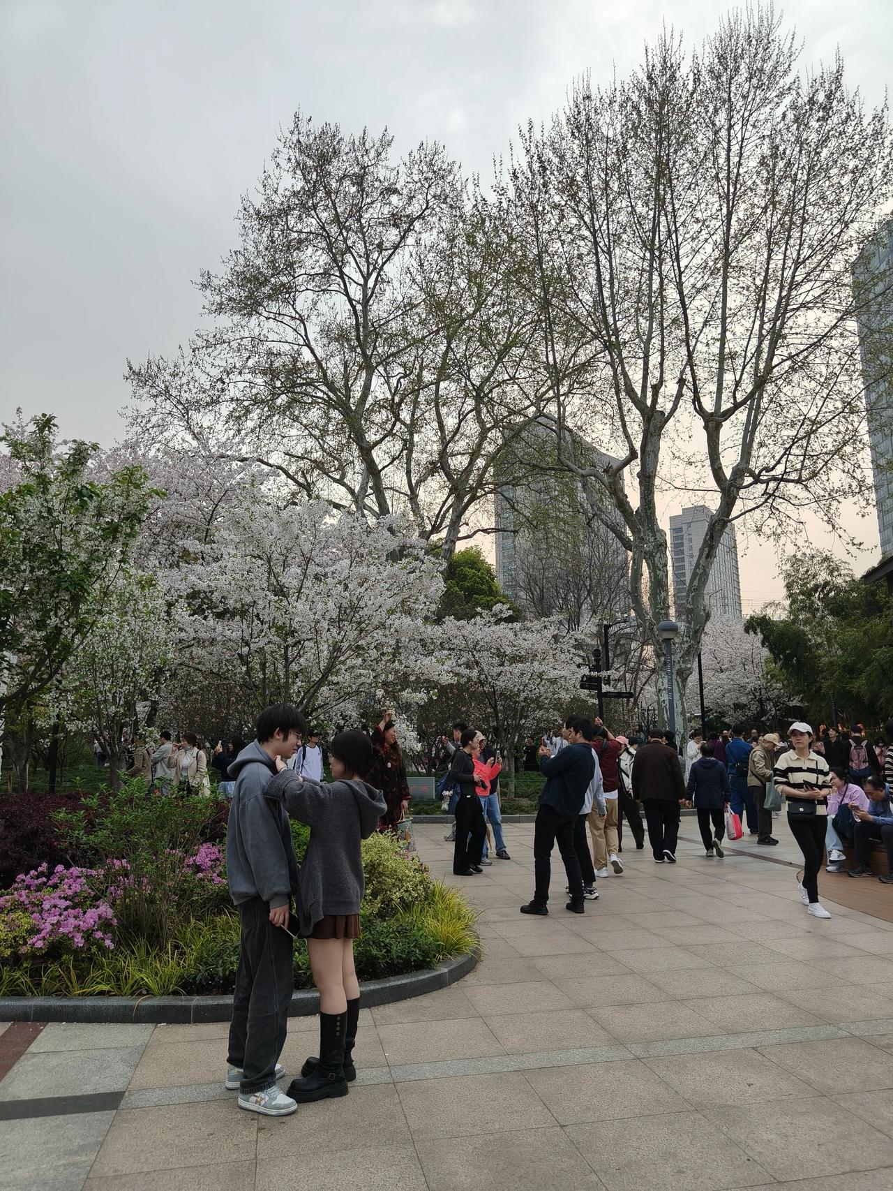 繁花似锦:形容樱花盛开时花朵繁多,色彩鲜艳,宛如绚丽多彩的锦缎铺满枝头。
