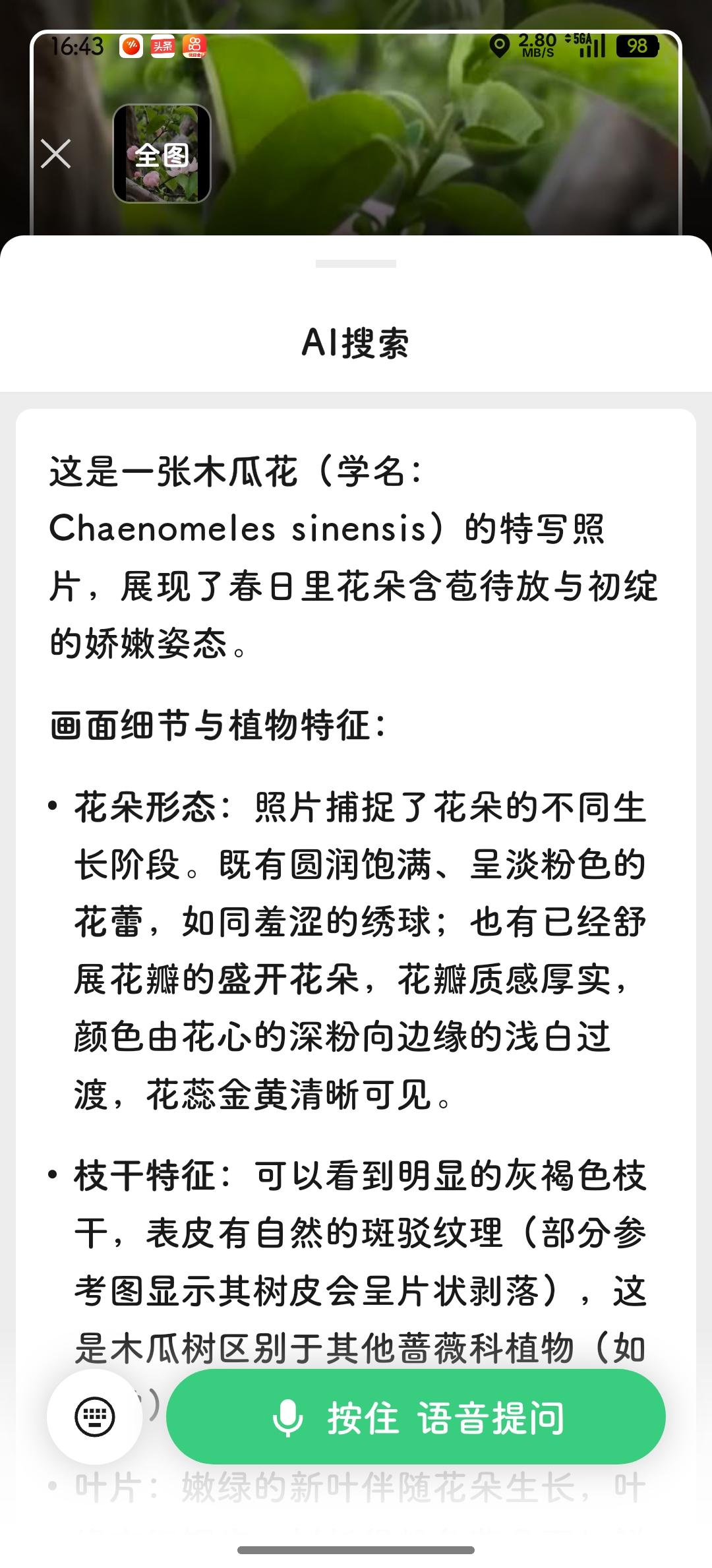 发现一树非常漂亮的花儿…🌸 木瓜海棠 木瓜海棠是蔷薇科木瓜海棠属的落叶灌木或小乔木,别名毛叶木瓜、木桃,为中国传统“海棠四品”之一 。其树形优美,花果俱佳,兼具观赏与药用价值,广泛分布于中国多地 。