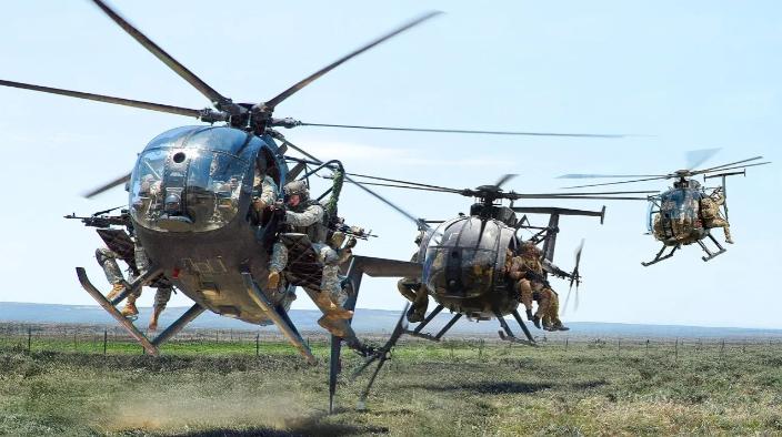 AH-6“小鸟”是美军特种部队的“微型杀手”,六桨螺旋桨让它能像蚊子一样悄无声息地飞,还能玩急转弯、悬停这些高难度动作。