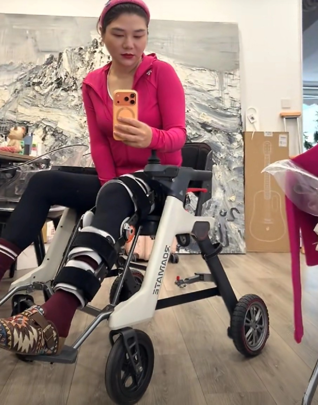 有人担心她太拼,她倒挺坦然,练习开电动轮椅的视频里,脸上带着笑,那股子不服输的劲儿,和她当年带着艺人杀进娱乐圈的狠劲一模一样。粉丝评论区直接嗑疯:“这才是真正的‘姐学’,受伤也不耽误搞事业!”