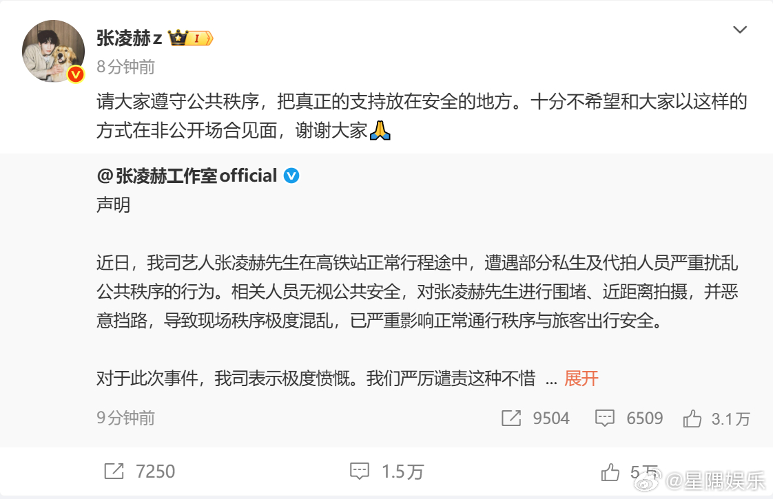 张凌赫被私生在高铁站围堵拍摄,这已经算是有礼貌了