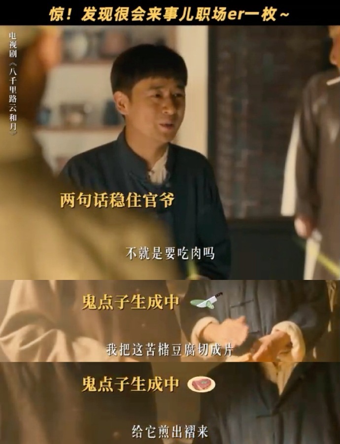 为演厨子每天切40斤土豆丝为所有的好演员点赞,黄澄澄在电视剧八千里路云和月 里演一个叫孟万福的伙夫,前期作为伙夫在厨房工作,为了演好这个人物,每天切大量土豆丝练习刀功,为了融入角色做了非常充分的前期准备