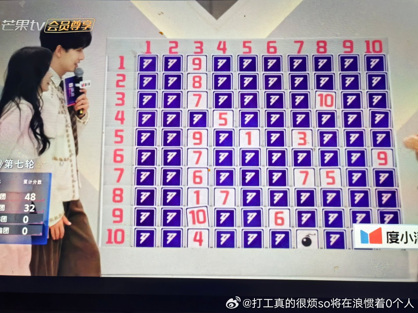 不是直播太影响乐子了好多人都不带脑子萧蔷可着一列抽,抽到倒数3张两张了都没现炸弹还抽,33%、50%的概率都没炸还一列基本都是大牌最后一行两个💣所以没炸弹了她们都好久不抽