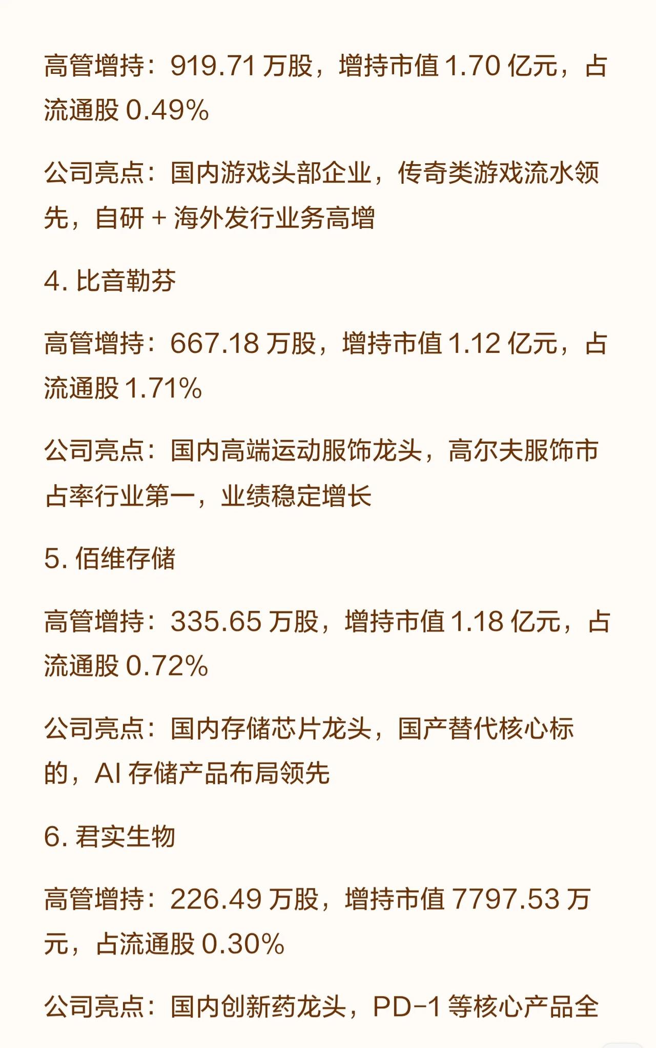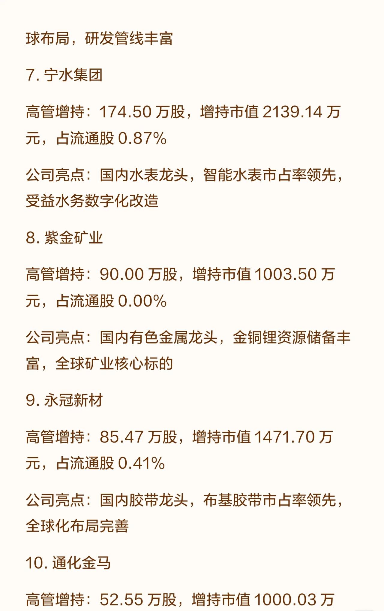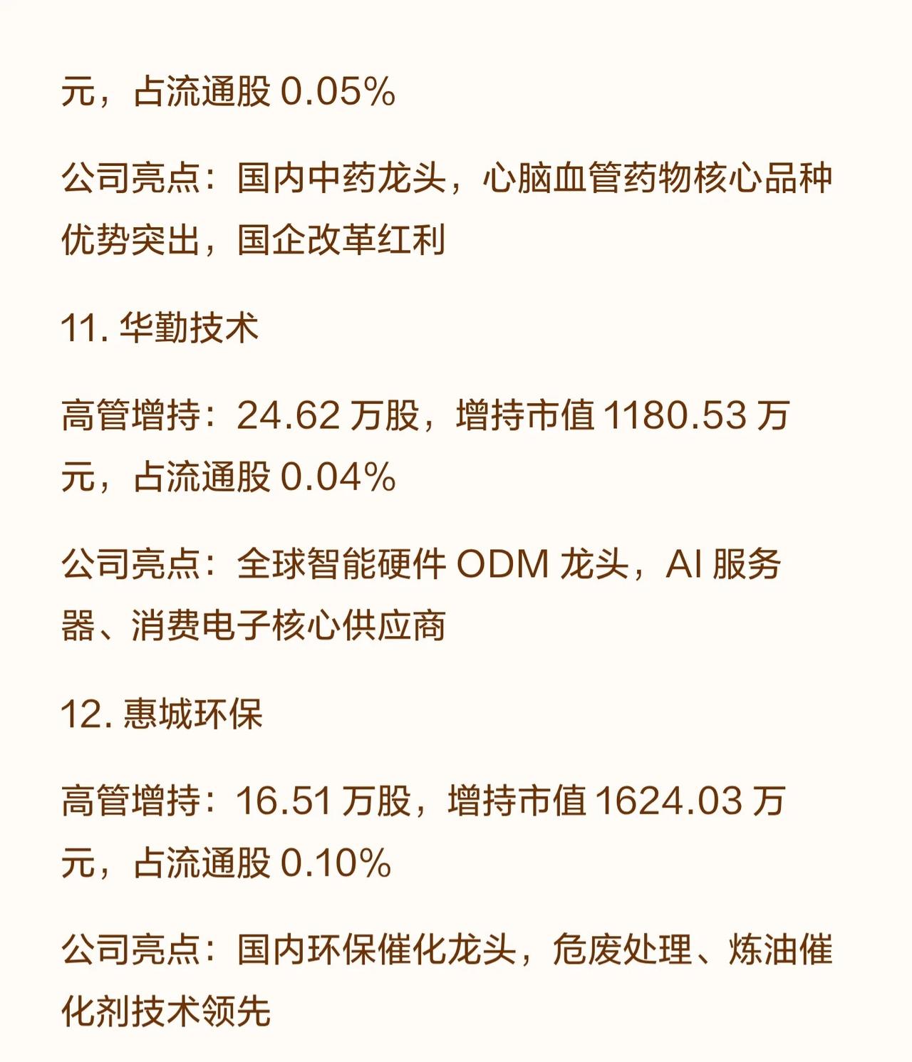 (注:高管增持数据反映年内增持规模,“占流通股比例”体现增持对股权结构的影响;企业亮点聚焦行业地位、核心竞争力或成长逻辑,供投资参考。)