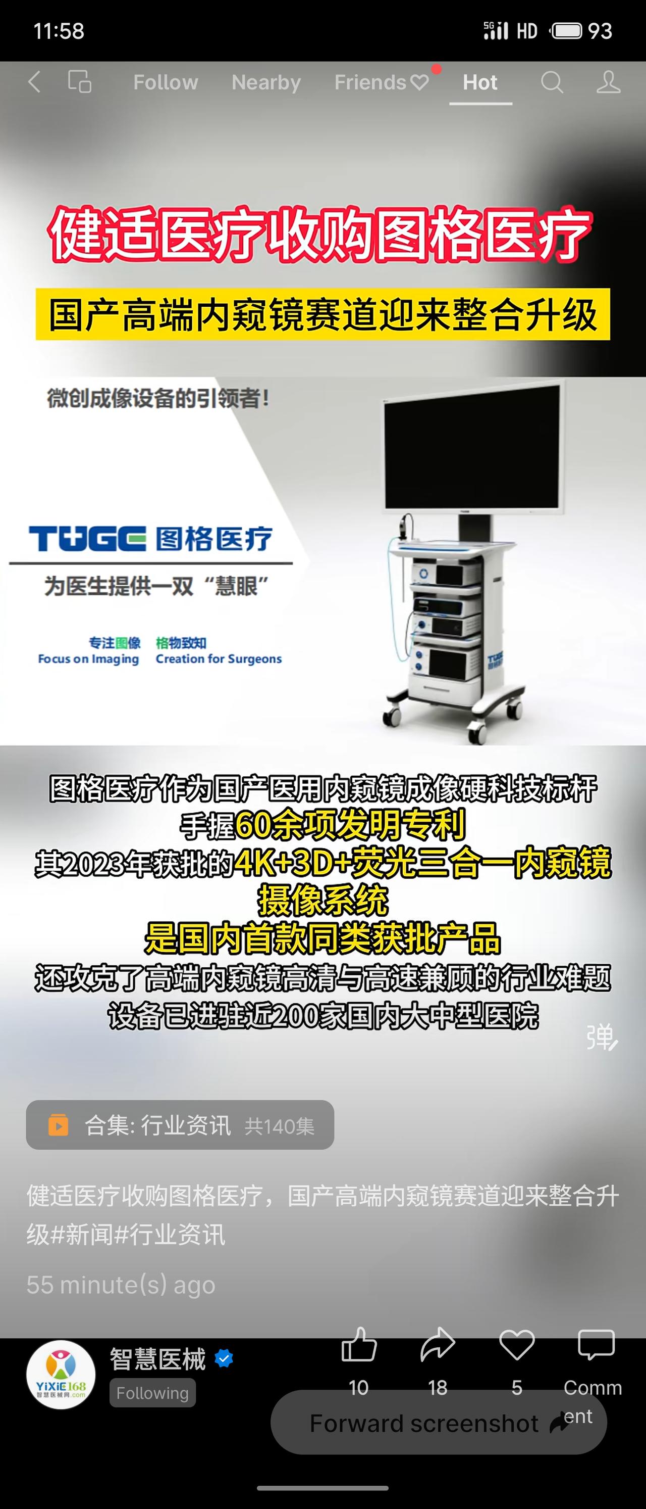 健适医疗收购图格医疗,补全微创外科“视觉”核心,实现从手术器械到视觉导航的全链条覆盖。图格拥有60余项专利及国内首款4K+3D+荧光内窥镜,已进近200家医院。未来将借助健适渠道推动国产高端内窥镜出海,加速行业整合与替代。