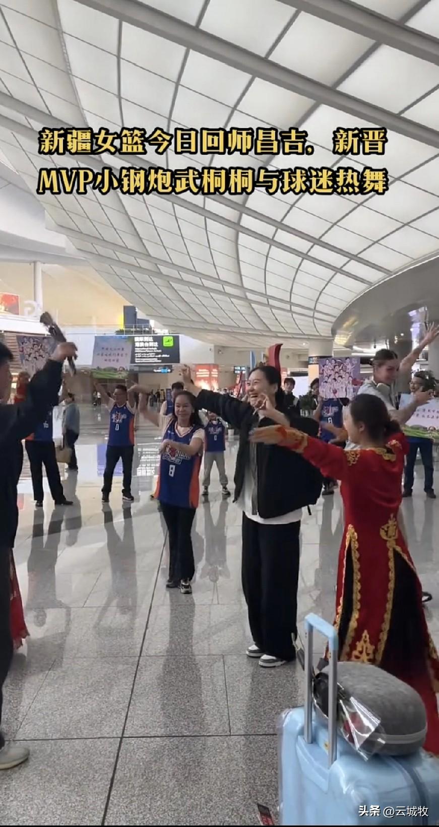 要说有大将风度的球员,还得是武桐桐,机场大厅这一段自信且从容的新疆舞,直接让新疆球迷吃了颗定心丸!