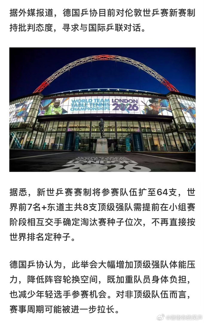 德国乒协质疑伦敦世乒赛新规 强队过早相遇就把底牌亮光了,淘汰赛还没开打呢,巅峰对