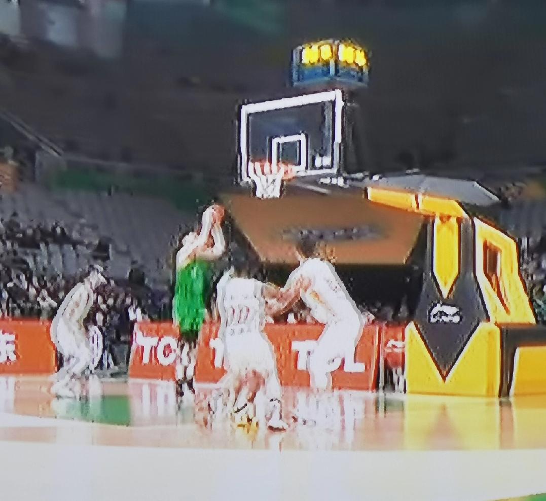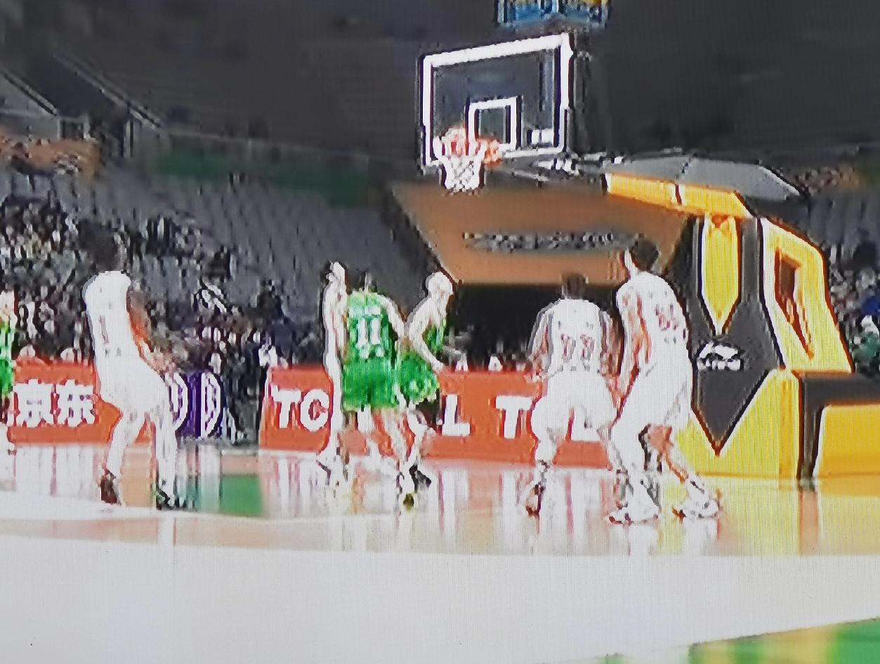 赵继伟心领神会快速将球传给弧顶处的莫兰德,莫兰德第一时间将球长传给前方的哈维,哈维一路杀进禁区又快速交给篮下左侧的付豪,付豪哨响打板命中,将比分改写为61比51领先,帮助本队以10分优势结束上半场。