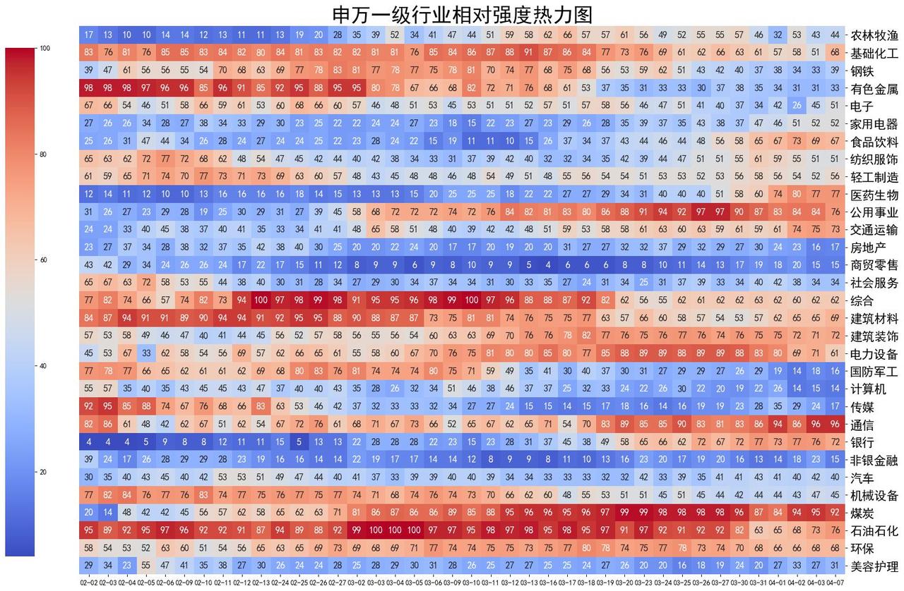 通信(96)、煤炭(92),是当前最强的两个行业,分别代表了算力和能源替代。