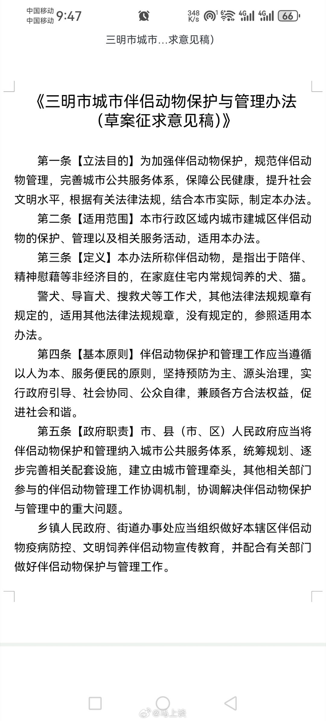 所以,不是说伴侣动物保护与管理办法不好,而是有些国之重事没做好。