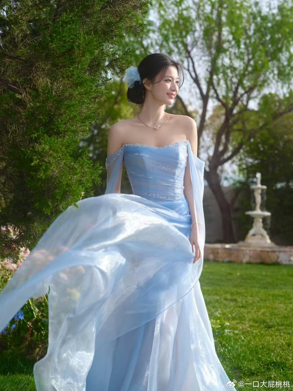 王楚然今日活动造型身穿一袭LAFINE2026秋冬系列蓝色飘带礼服,佩戴Pomellato珠宝点缀✨ 仙女风不太适合老🚢,回归高级感路线