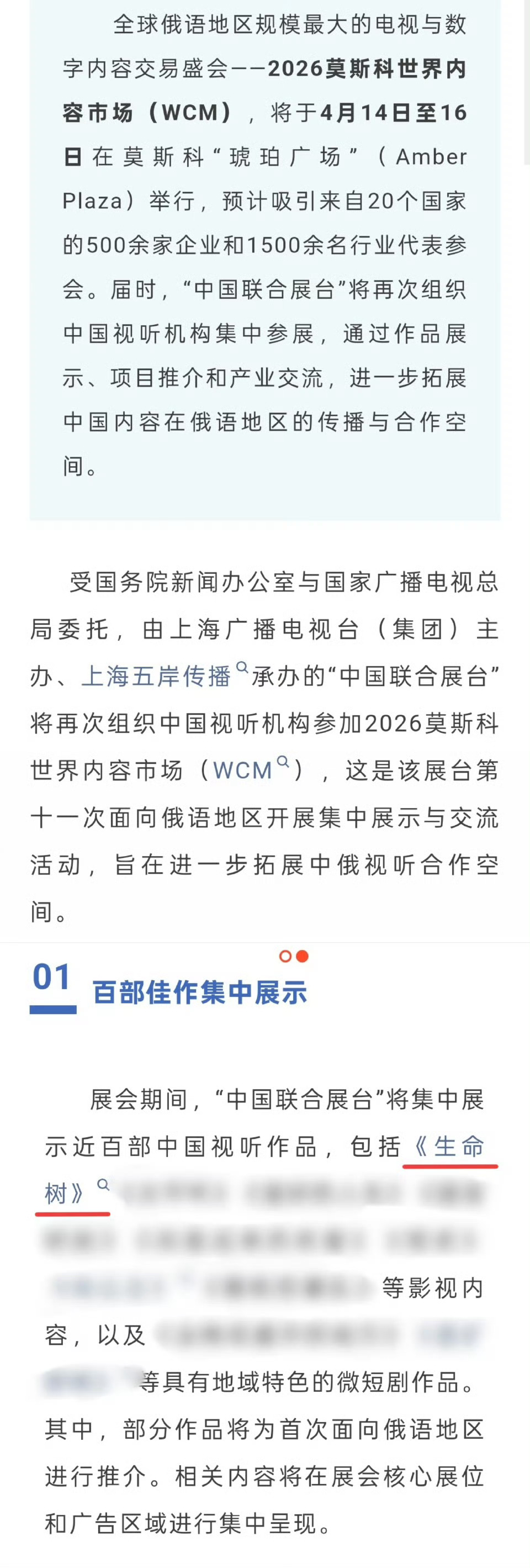 杨紫生命树🫘话题已经89亿了,马上要亮相2026莫斯科世界内容市场,好剧走出国