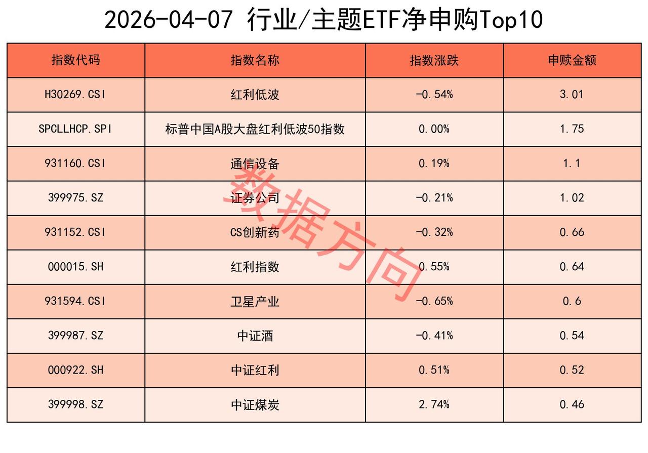 其他进入申购榜的还有:通信设备指数(1.1亿)、证券公司指数(1.02亿)、CS创新药指数(0.66亿)、卫星产业指数(0.6亿)、中证酒指数(0.54亿)。