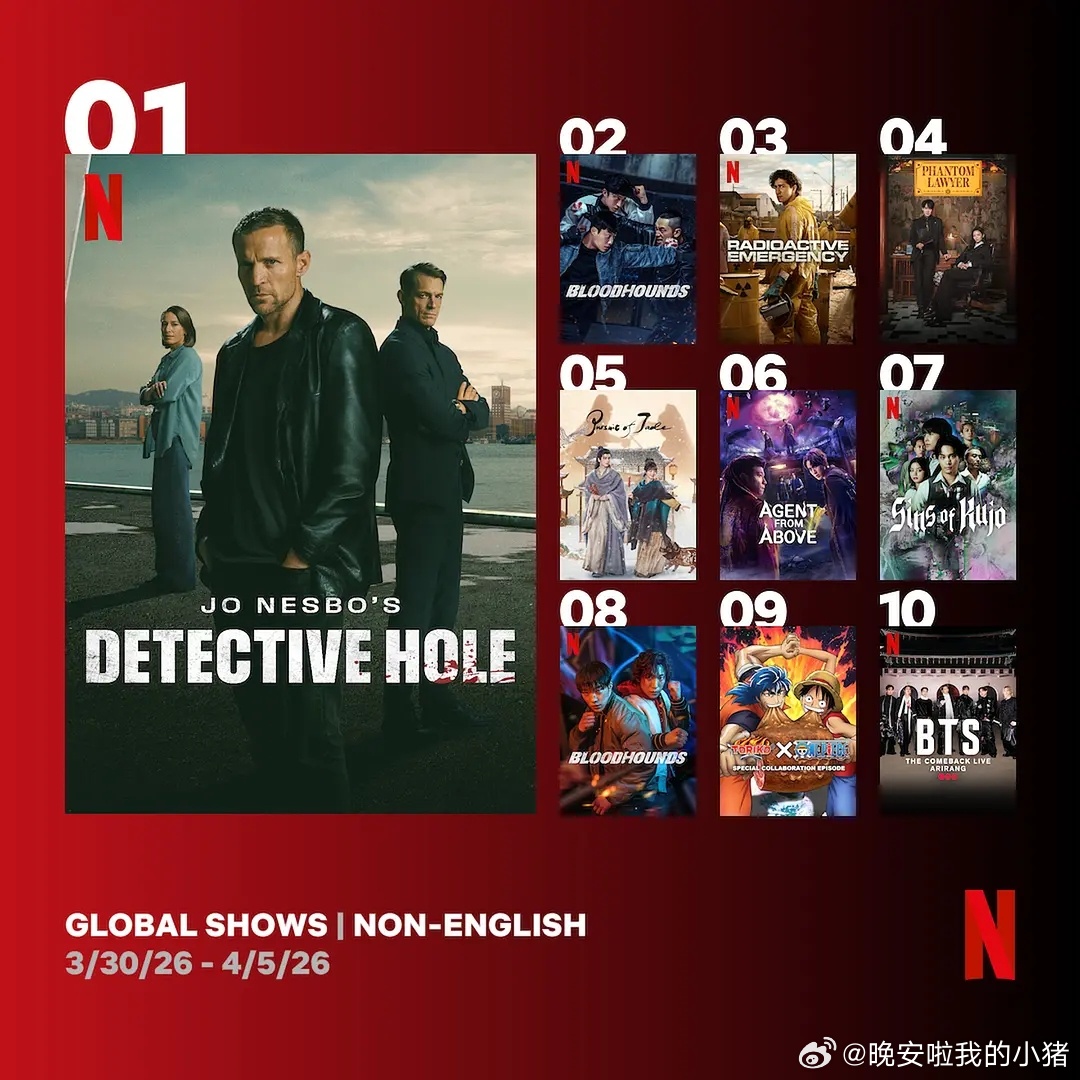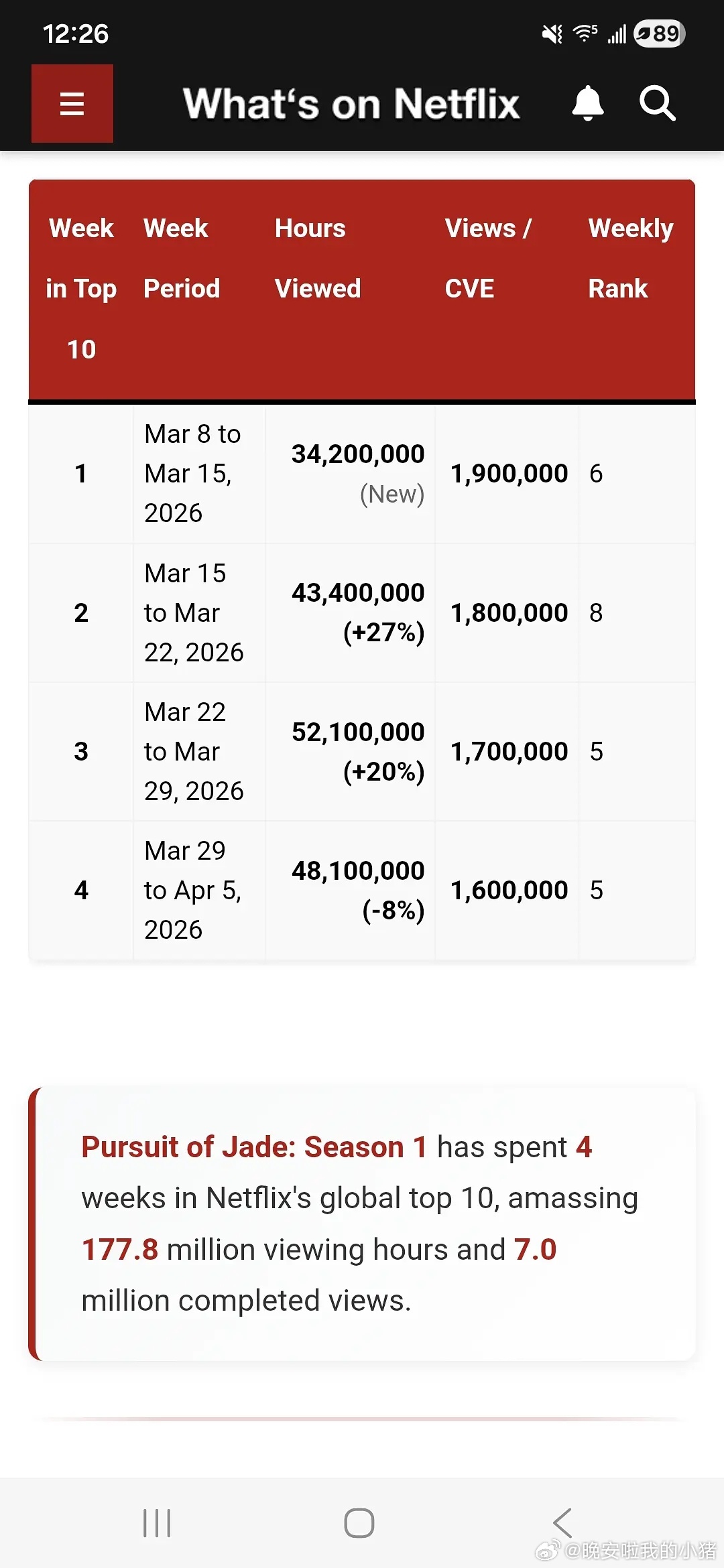 逐玉连续四周进入网飞周榜,首部以完整片长进入网飞非英周榜的大陆剧