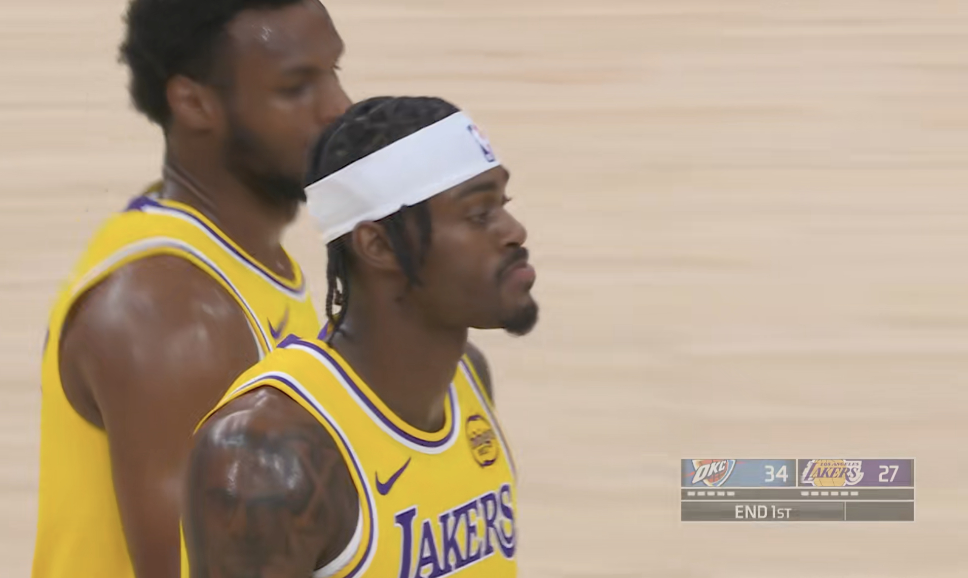 第一节结束,湖人27-34雷霆,怎么说?雷霆vs湖人 蒂米10分1助攻,八村2分