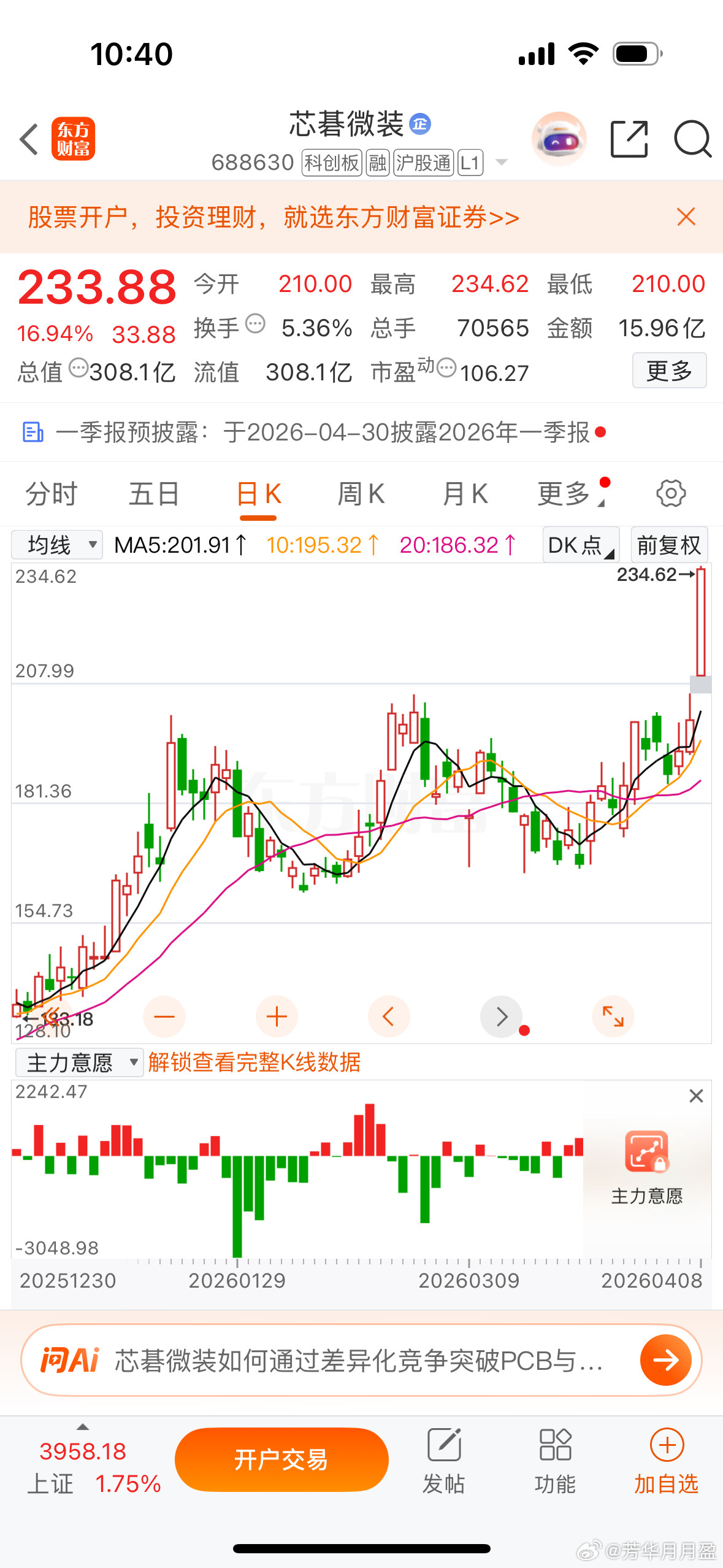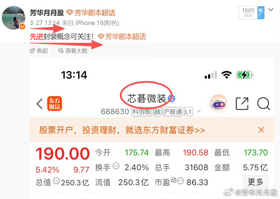 动荡期手拿强势股也是种防守,昨天是$长芯博创 sz300548$ 创历史新高,今天轮到$芯碁微装 sh688630$ ,芳华建仓的第一时间都提醒了V➕会员,用心的爱粉跟着抄作业轻松躺赢!