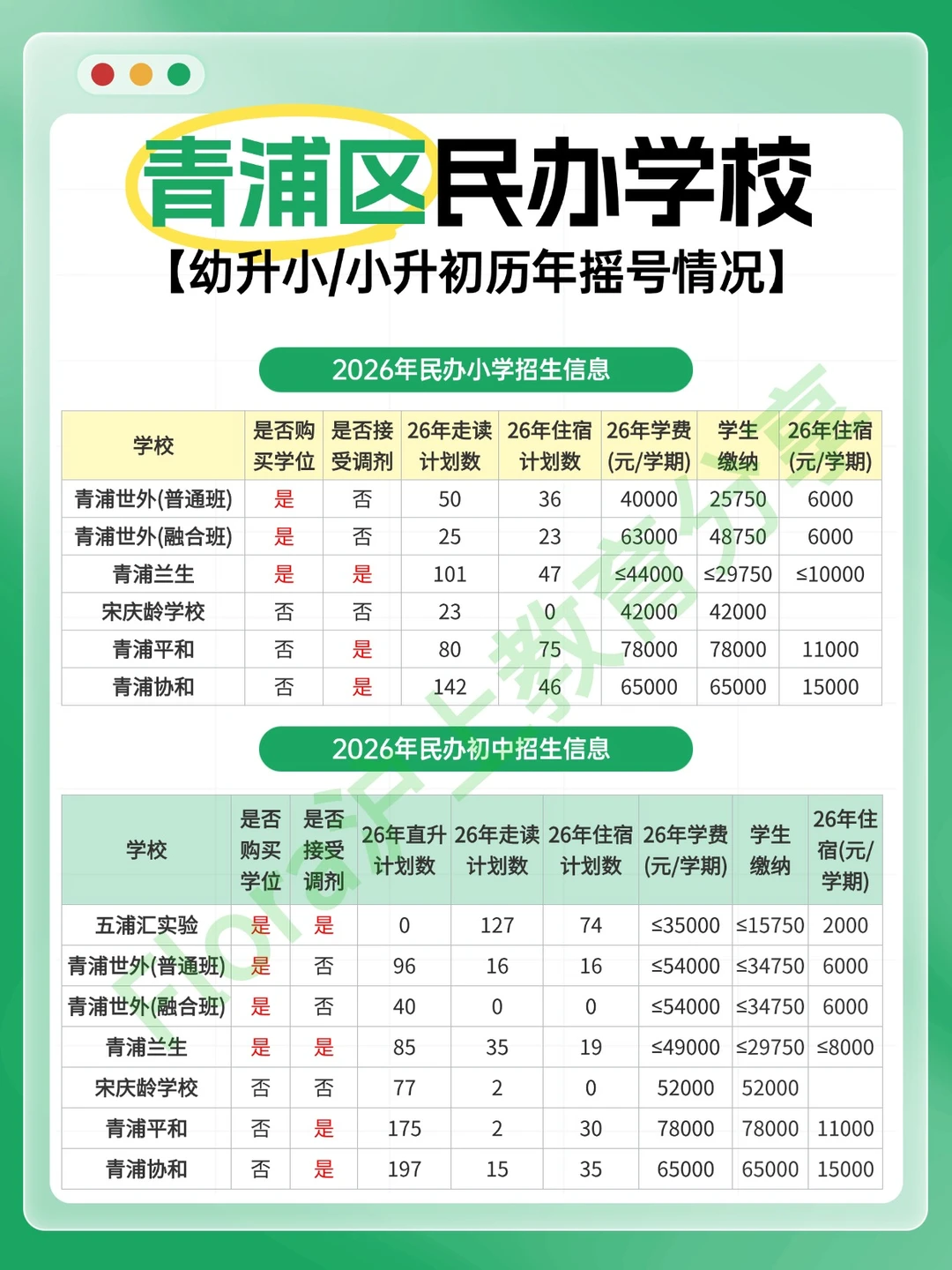 2026民办招生信息·青浦完整版