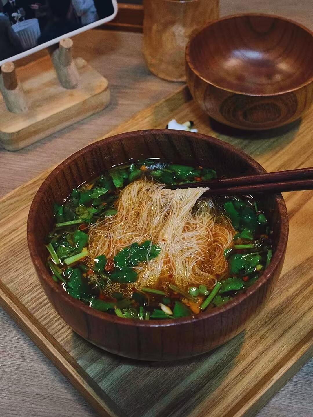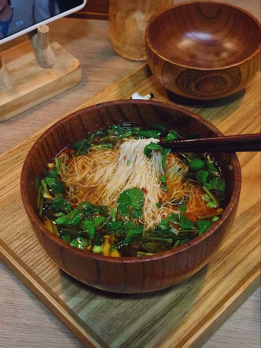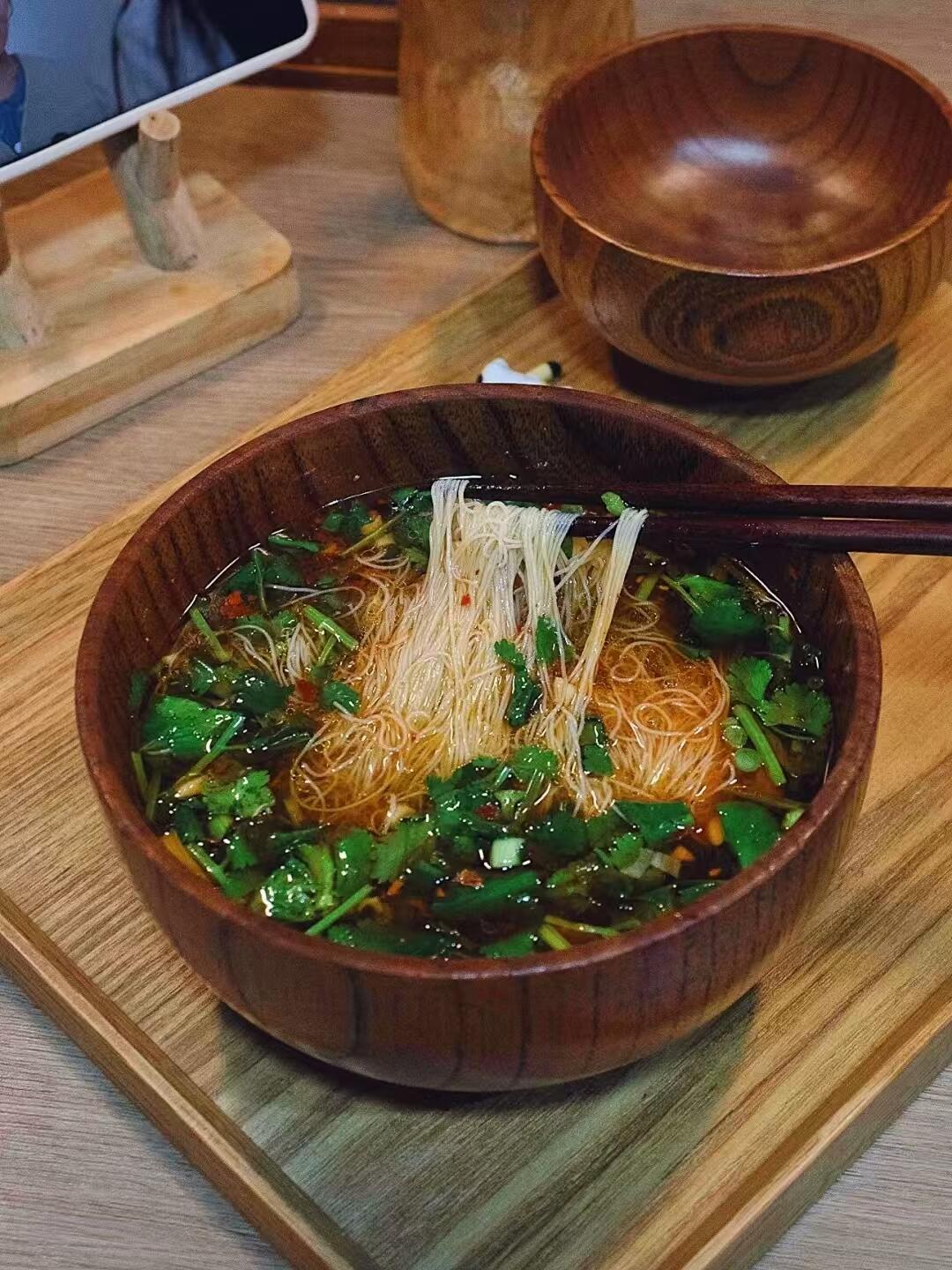 米粉,香菜,葱花,辣椒面,胡椒粉,蒜末,生抽,陈醋,蚝油