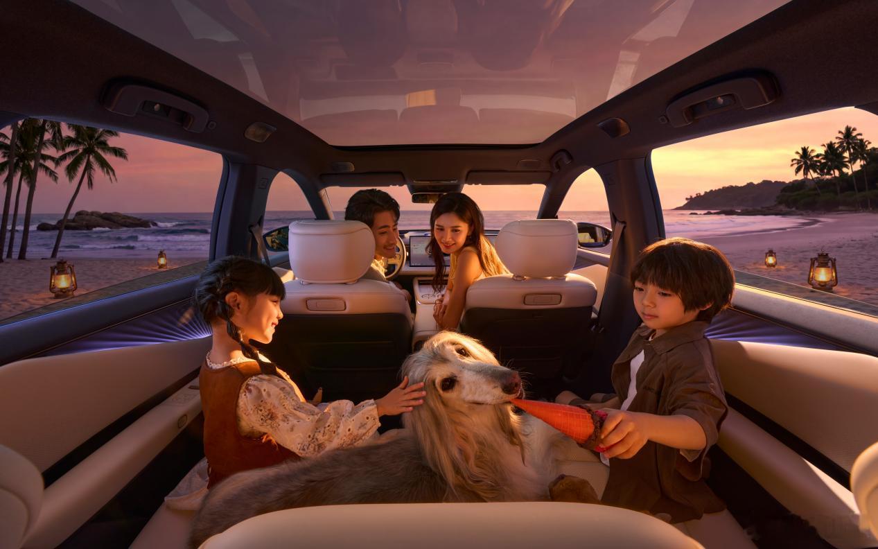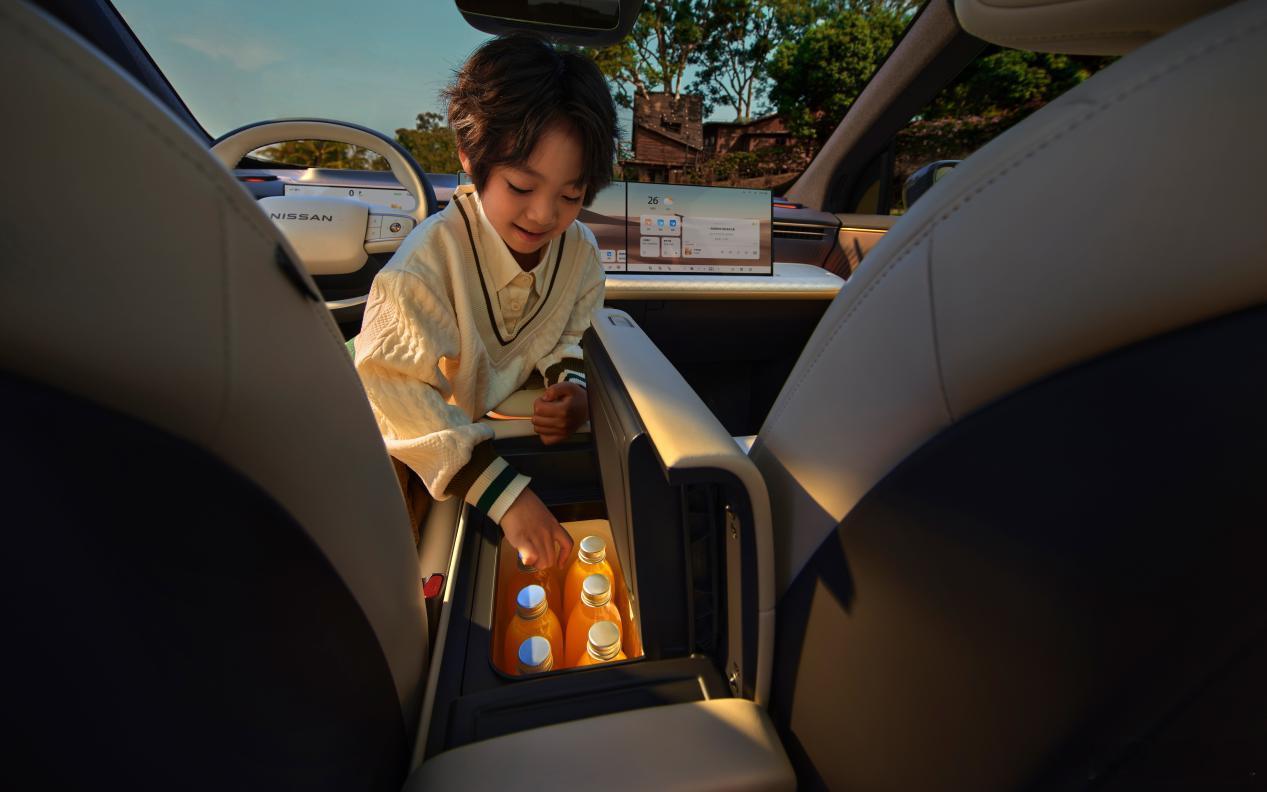 空间和舒适是这台车的重头戏。大五座布局,后排直接给到133°电动大躺椅,通风加热按摩一套齐活,副驾还有AI零重力云毯座椅,不敢是驾驶还是乘坐都非常舒适。而且日产NX8还把“带娃”和“养宠”都考虑进去了。车载冷暖冰箱能制冰也能热奶,AI语音助手能陪聊,甚至还有宠物守护模式+遗留提醒,这种细节其实比堆参数更有感知。大大大五座智慧舒享SUV