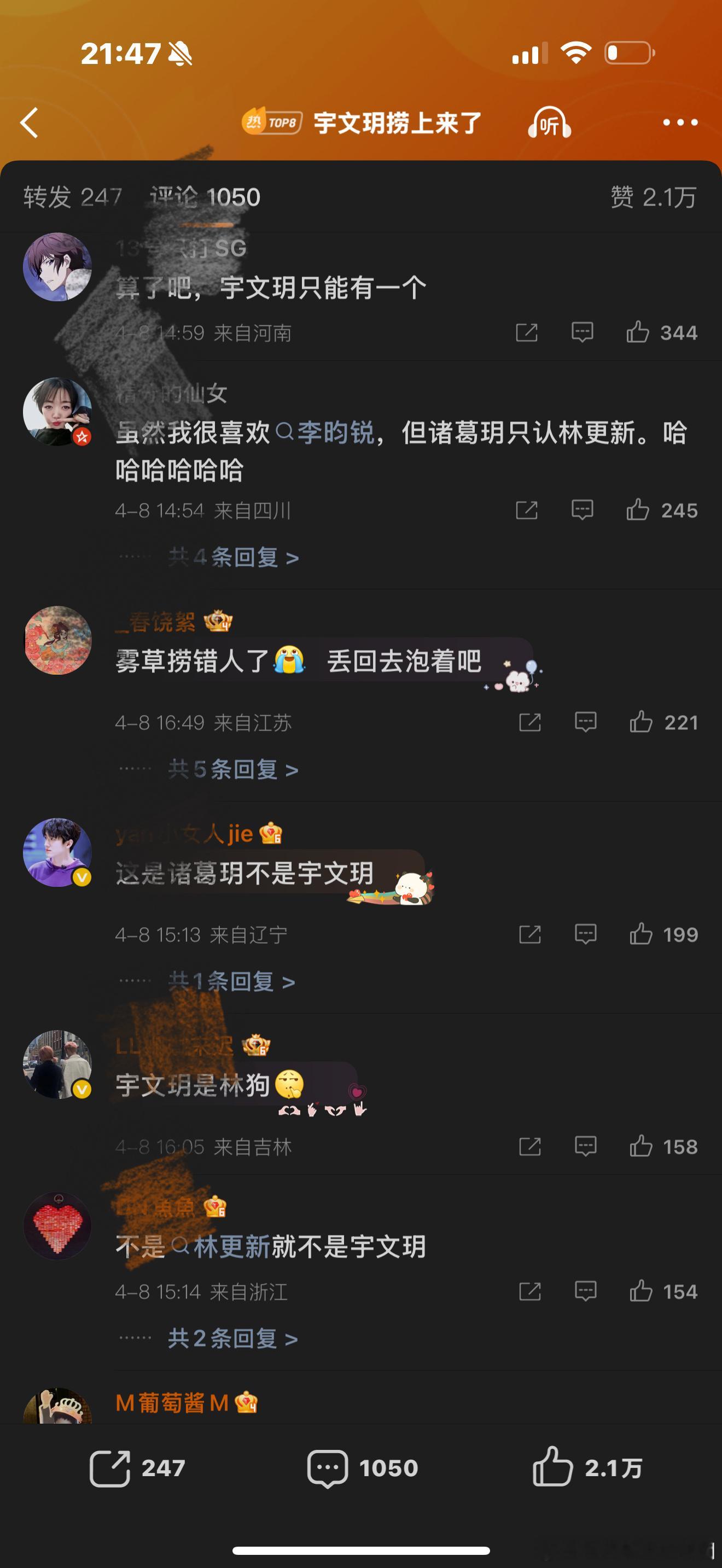 宇文玥捞上来了这个ct下面,热评全是观众不买单,李昀锐好歹也是九重紫爆出来的小生,粉丝kp能力这么差咩
