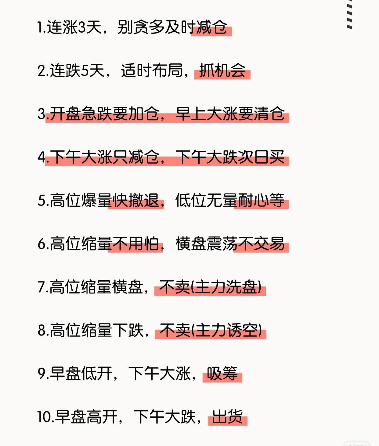 4. 下午大涨仅减仓,下午大跌次日买(下午强势拉升时,勿追高,以“落袋为安”式减仓为主;下午大幅下跌后,观察次日情绪修复信号,再择机介入。)