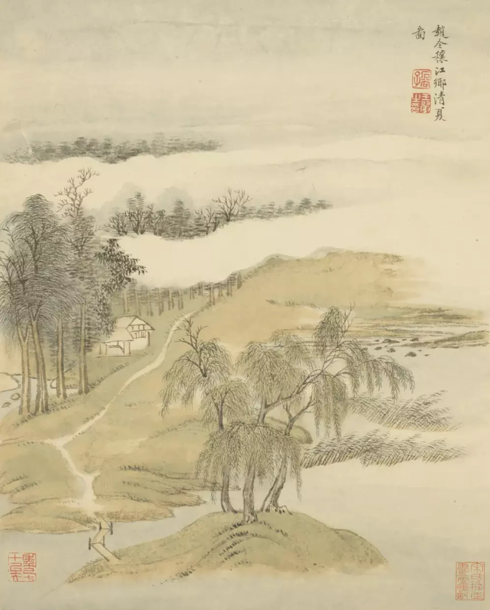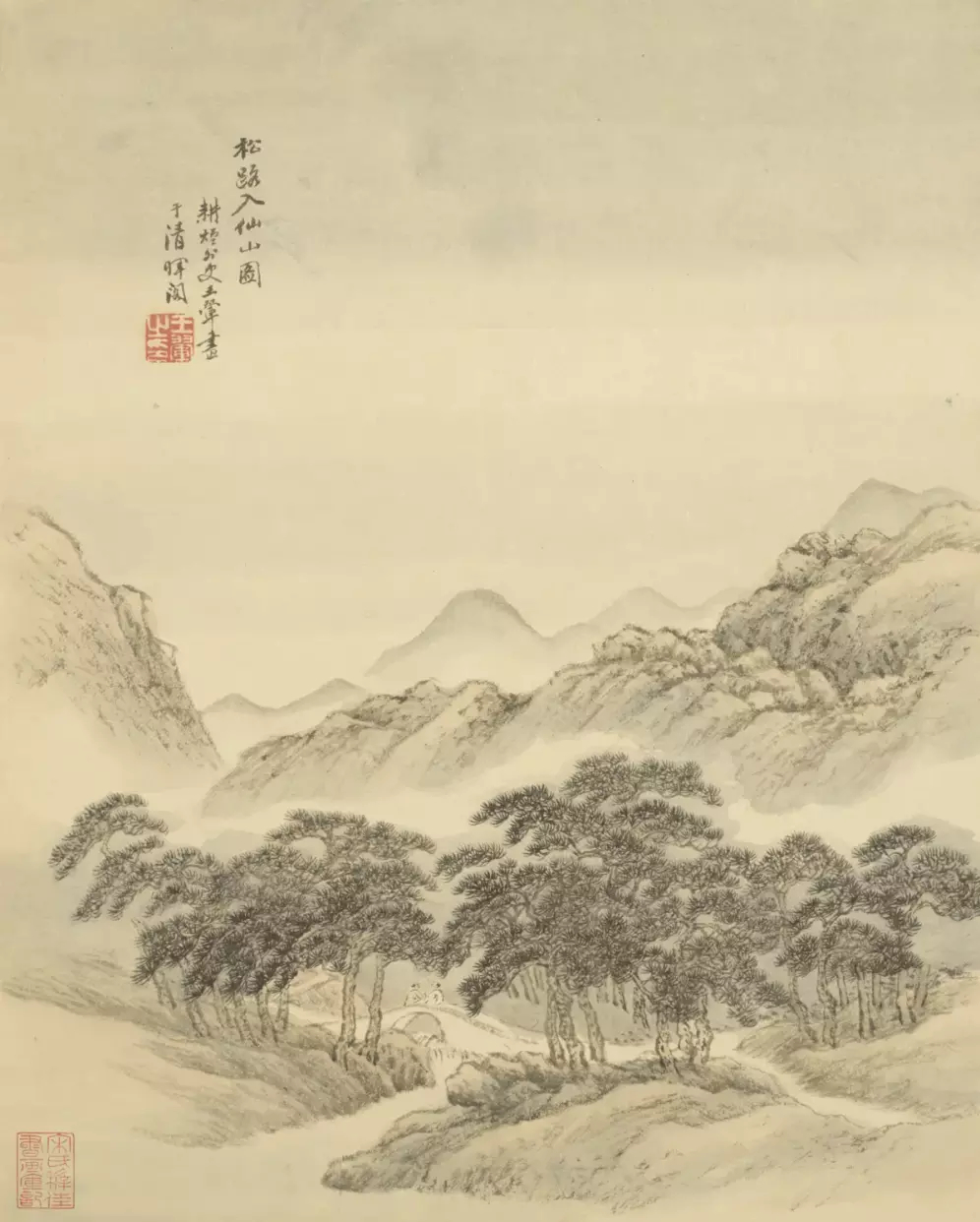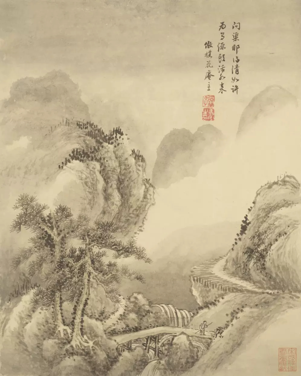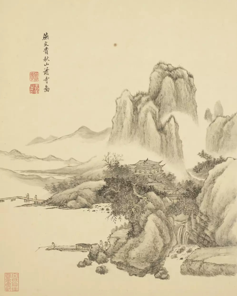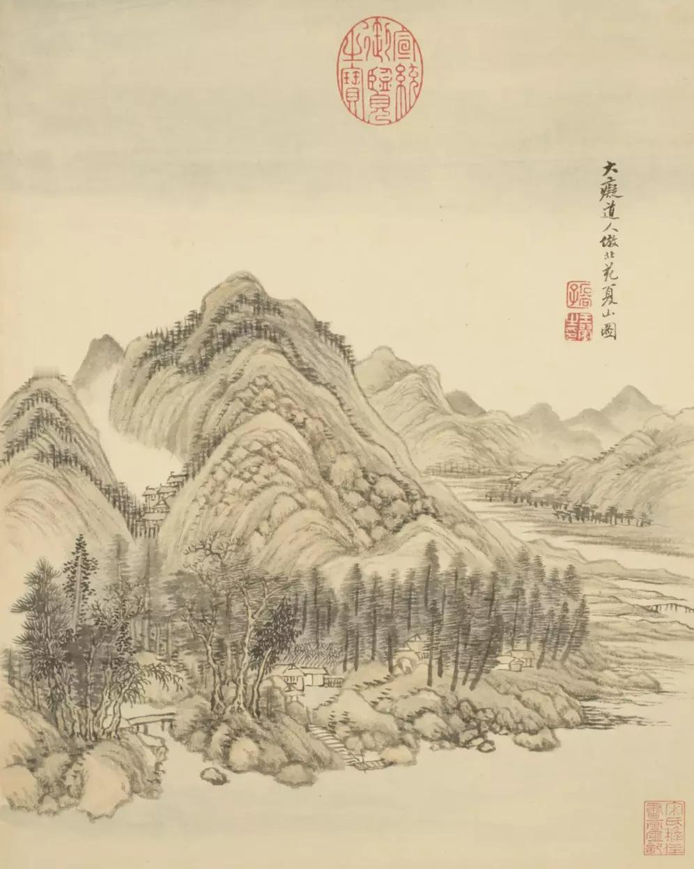 清 王翚 仿古山水册。全册十六开,其中第九开有“年已七十矣”一印,故知成于辛巳(1701)也。按此册虽成于晚年,而笔底时有新意。这就是中国风遇见艺术