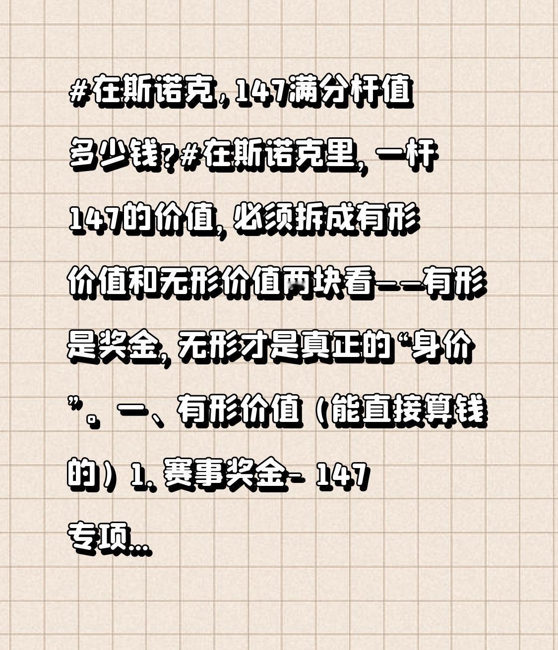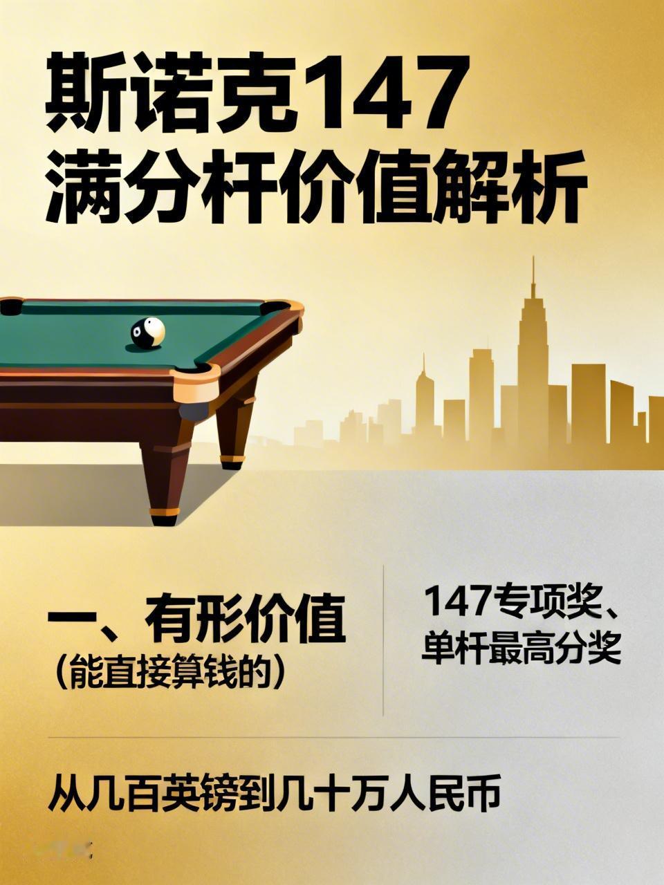 在斯诺克里,一杆147的价值,必须拆成有形价值和无形价值两块看——有形是奖金,无形才是真正的“身价”。