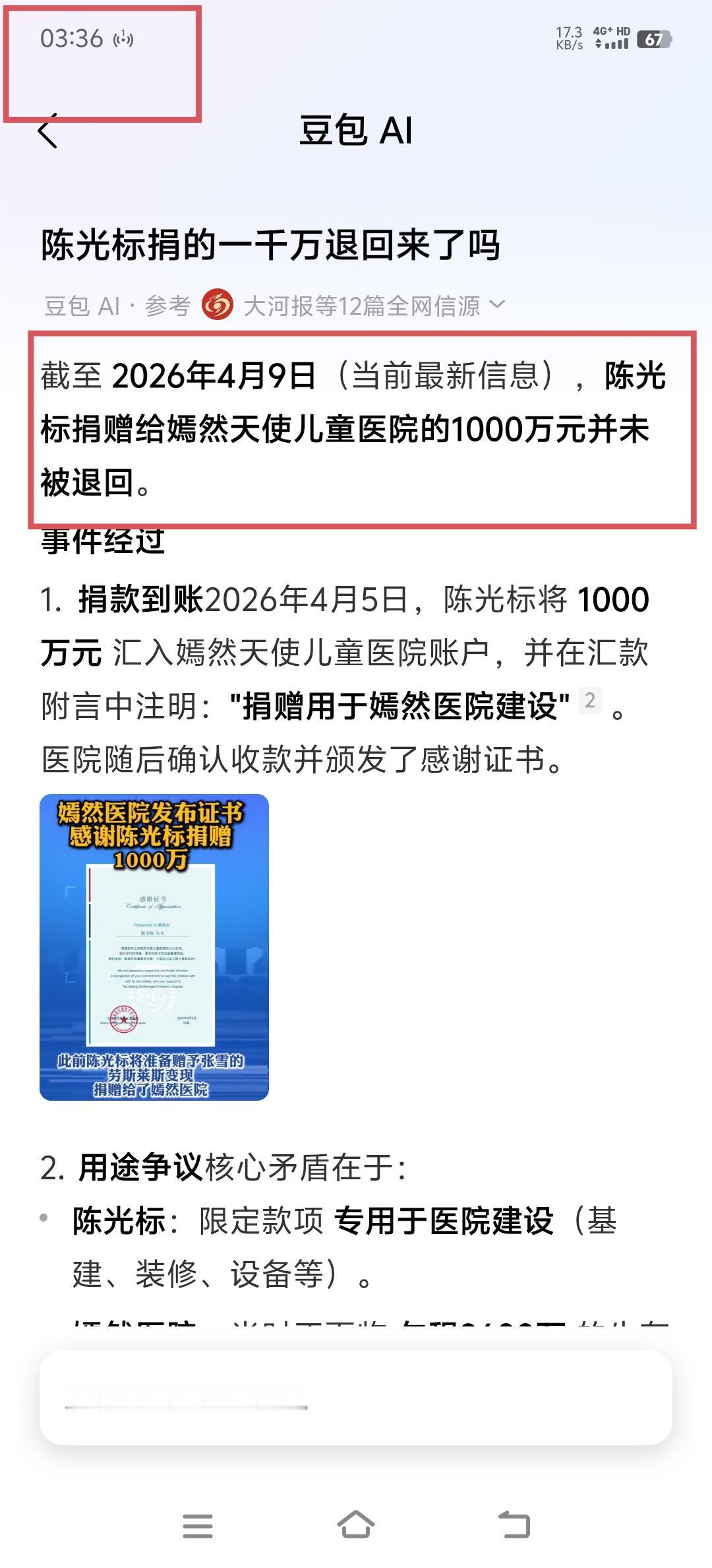 事情起因是,半夜刷头条的时候,看到一篇关于陈光标那1000万捐款,已经被嫣然医院退回的文章。
