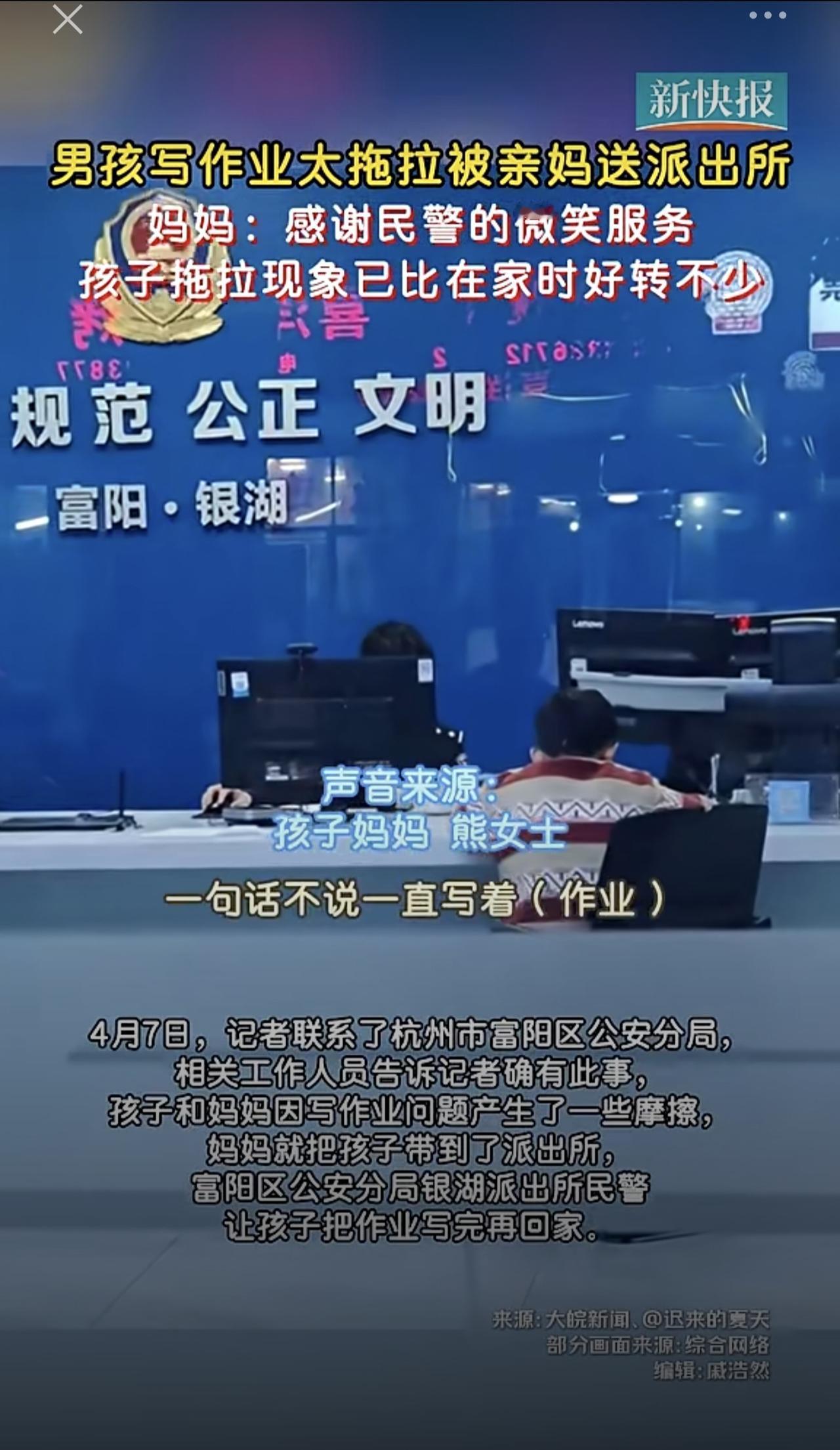 杭州男孩写作业太拖拉,被亲妈送到派出所,结果一天都写不完的作文,在派出所一小时就完成[捂脸]