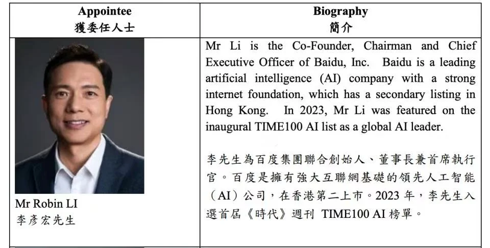 这不,刚好看到李彦宏出任香港特首顾问团成员,如果单看这条新闻,不定能发现它的特别之处,但往回看,就会发现一条线已经连起来了。