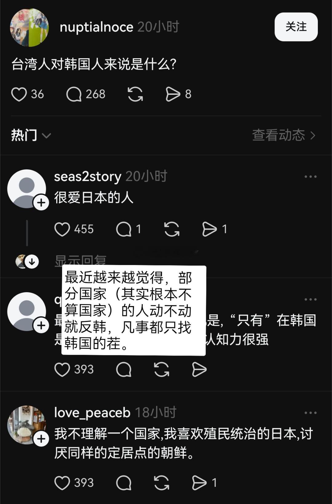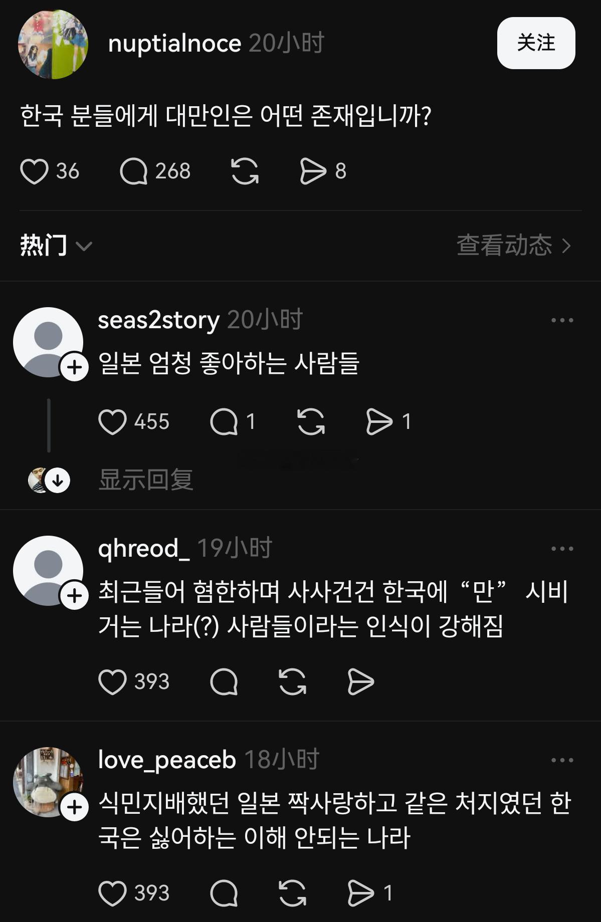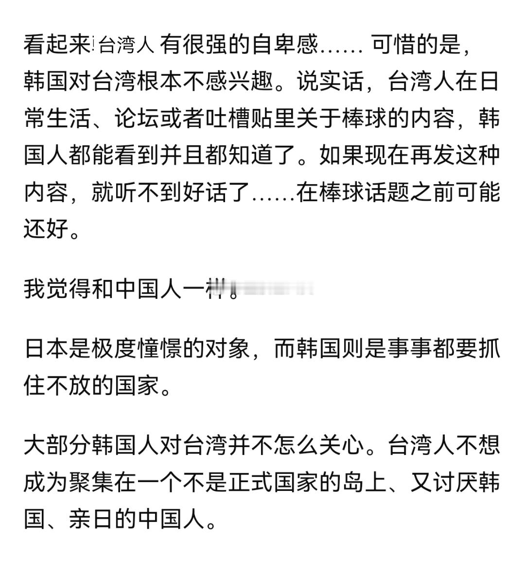 台湾人问“韩国人怎么看台湾人?”韩国人回“是一种很爱日本的中国人”