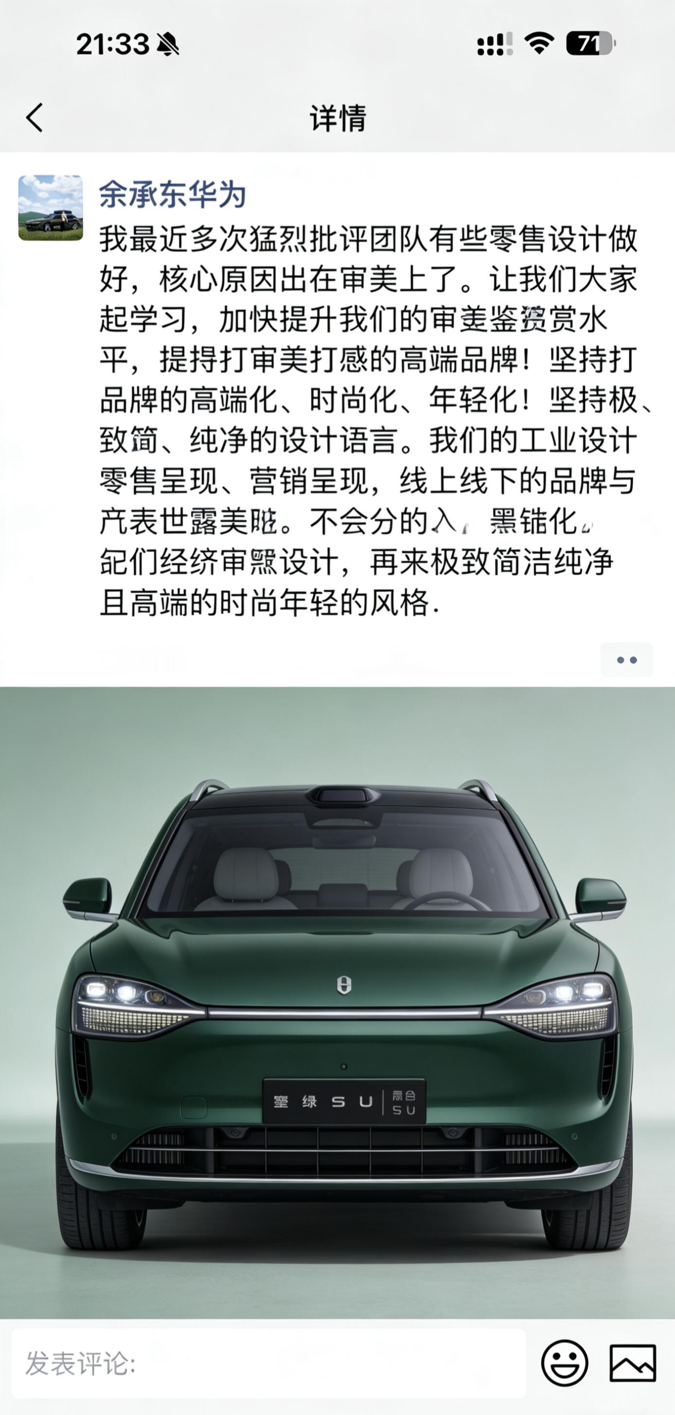 余承东说要提高审美设计语言,我用几分钟时间用 AI 简单设计下三张车型。大家觉得怎样。